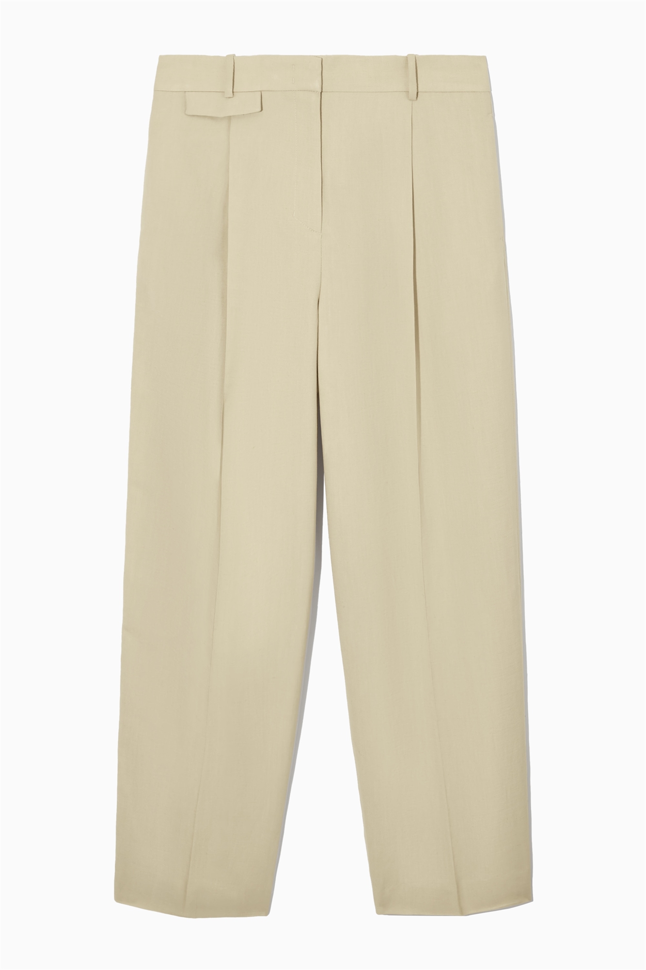 Наденьте на лето эти брюки с широкими штанинами. Они сшиты из легкой льняной ткани нейтрального бежевого оттенка. Они выполнены с продуманными деталями внутри и снаружи - обратите внимание на нарядный карман для монет и скрытый регулируемый язычок, чтобы вы могли носить их с низкой или высокой талией. Для полного комплекта носите их с блейзером в тон. - Свободный крой, широкие брючины, полная длина - Боковые карманы - ECOVERO™ является торговой маркой Lenzing AG. Волокна вискозы получают из сертифицированных возобновляемых источников древесины с помощью процесса, снижающего воздействие на окружающую среду Ткань: 55% вискозы ECOVERO™, 24% льна, 21% вискозы. Без учета отделки / Сухая чистка Внутренняя длина ноги размера EU 36 составляет 75 см / Модель носит размер EU 36