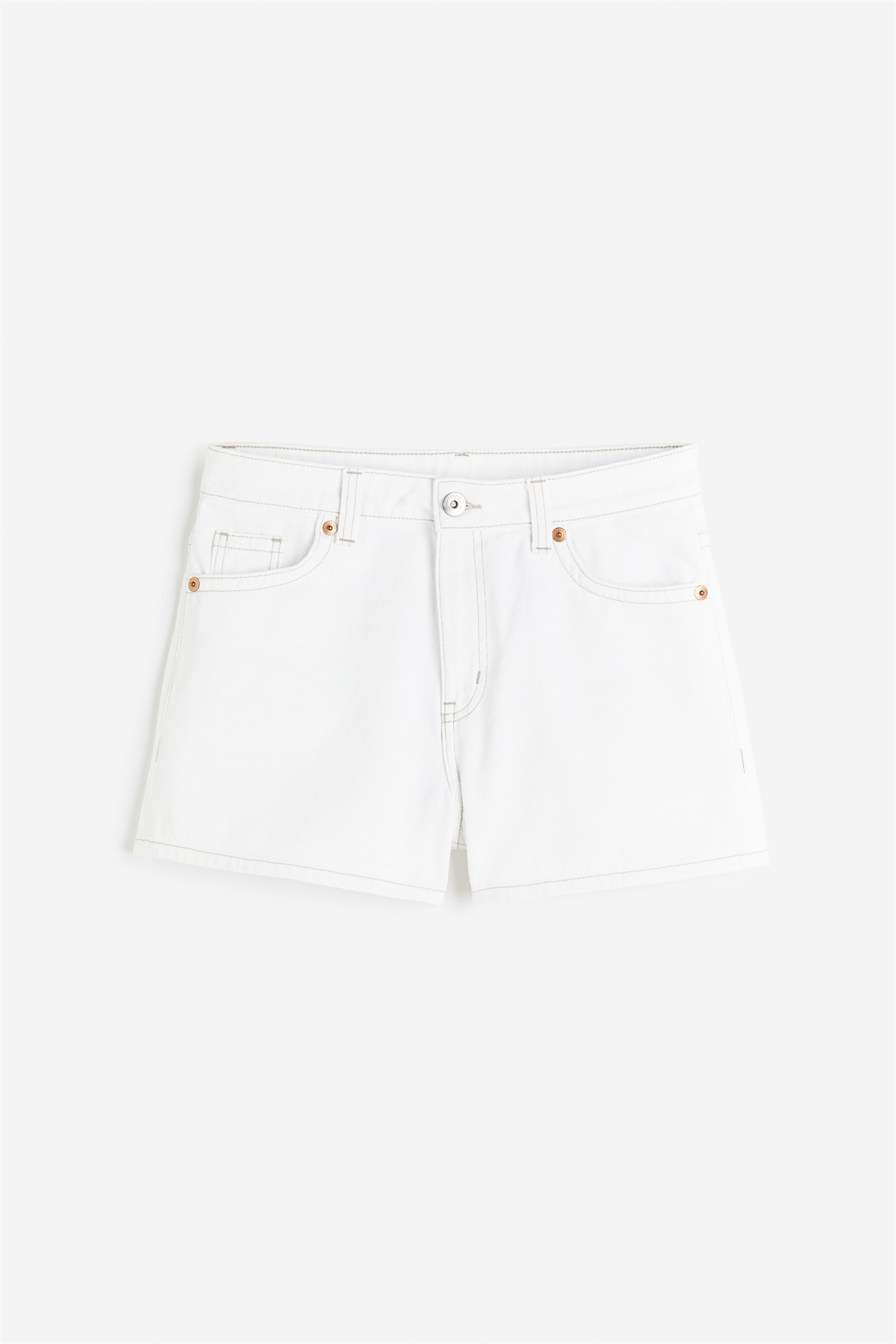 Шорты с 5 карманами из жесткого хлопкового денима с обычной талией, ширинкой на молнии и пуговице и декоративными швами на задних карманах.