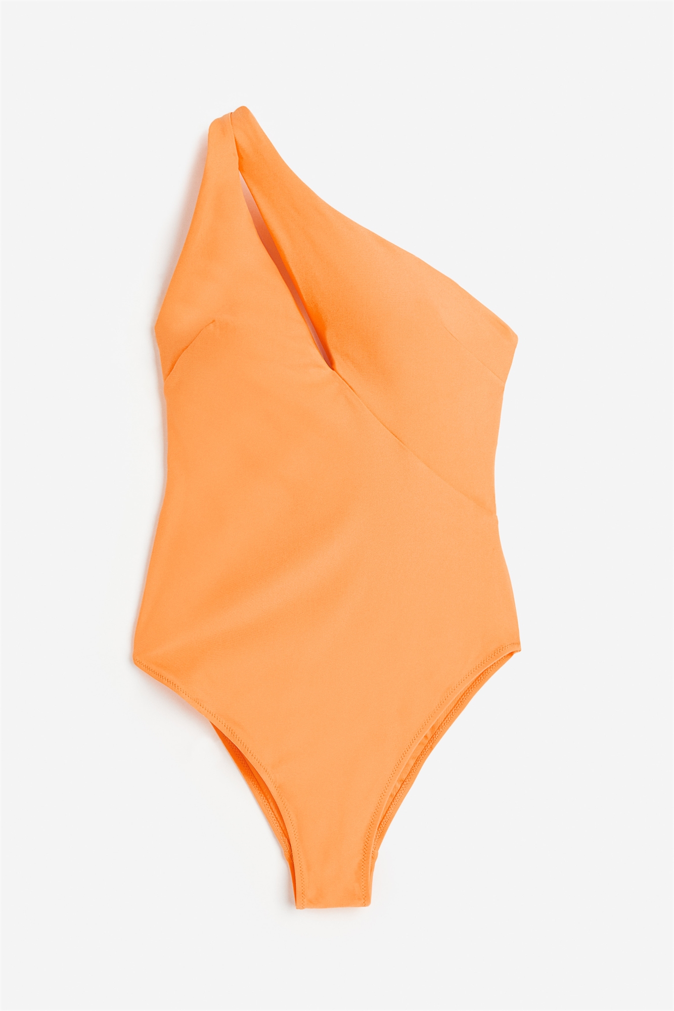 Асимметричный купальный костюм на подкладке с широкой бретелью и вырезом спереди. Чашечки со съемными вставками, которые придают груди форму и хорошо поддерживают ее. Высокий вырез на ноге и спина со средней степенью защиты.