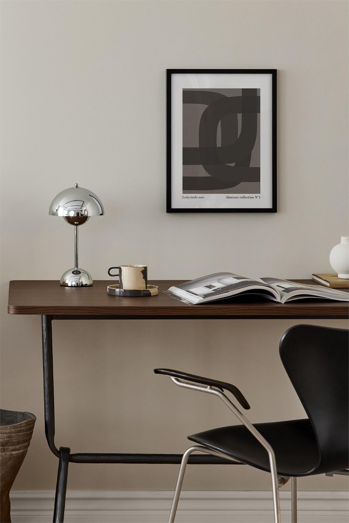 Джулия Халльстрем Хьорт выросла в небольшом городке Лунд на юге Швеции. Ее мать была очень артистичной, поэтому она всегда поощряла свои творческие способности, которые со временем привели ее к изучению различных техник и художественных стилей - от реалистичных, фигуративных до более абстрактных. Джулия имеет академическое образование в области медицины и психологии, но больше всего ей нравится заниматься искусством. "Создание произведений искусства заставляет меня чувствовать себя одновременно спокойной и взволнованной; это сложная и расслабляющая работа". Она описывает свою коллекцию постеров как вдохновленную природой и нордическим дизайном и легко вписывающуюся в самые разные интерьеры благодаря использованию нейтральных тонов. Постер Labyrinthe Noir имеет встроенную белую рамку, которая элегантно обрамляет мотив.