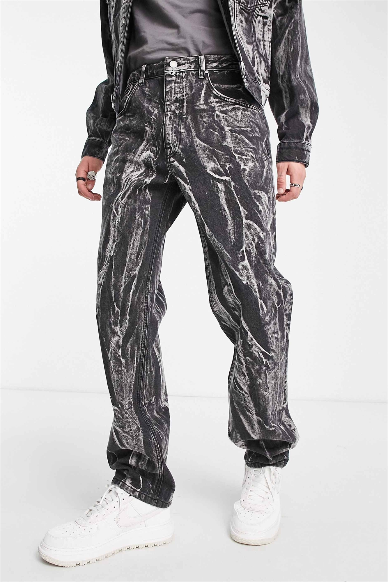 Джинсы с широкими прямыми брючинами в черном мраморном оттенке
