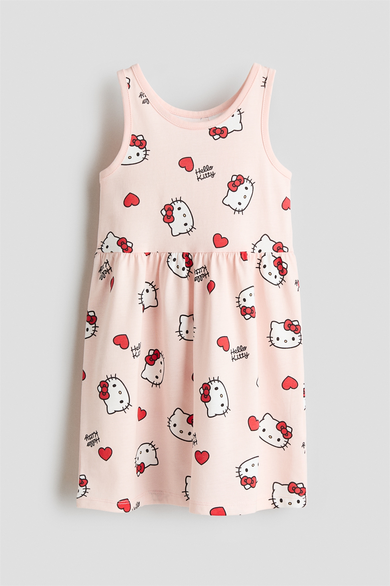 Платье без рукавов из мягкого хлопкового джерси с красочным принтом. Круглый вырез, узкая окантовка по вырезу и проймам и сборка по подолу.