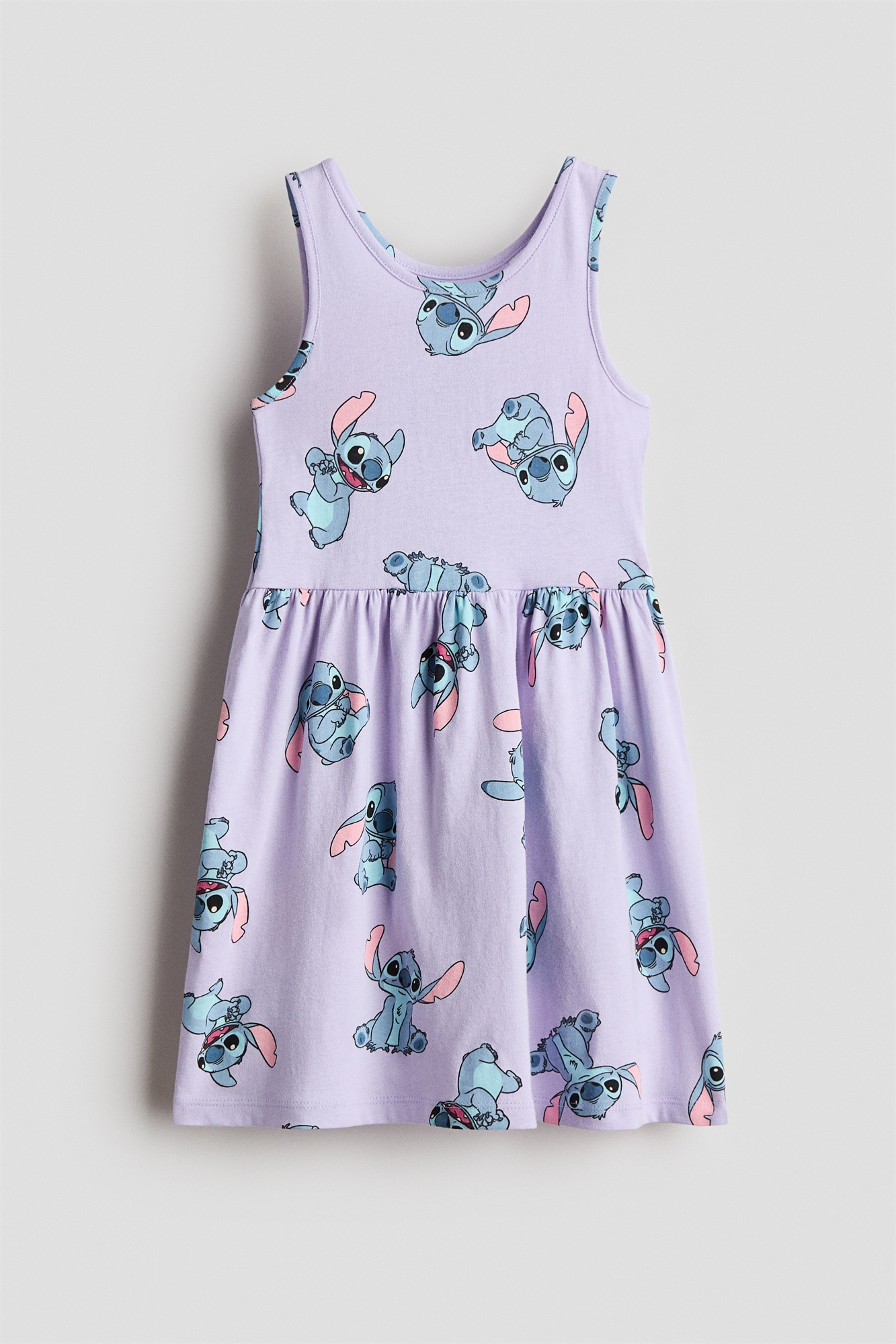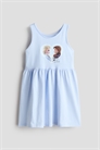 Платье без рукавов из мягкого хлопкового джерси с красочным принтом. Круглый вырез, узкая окантовка по вырезу и проймам и сборка по подолу.