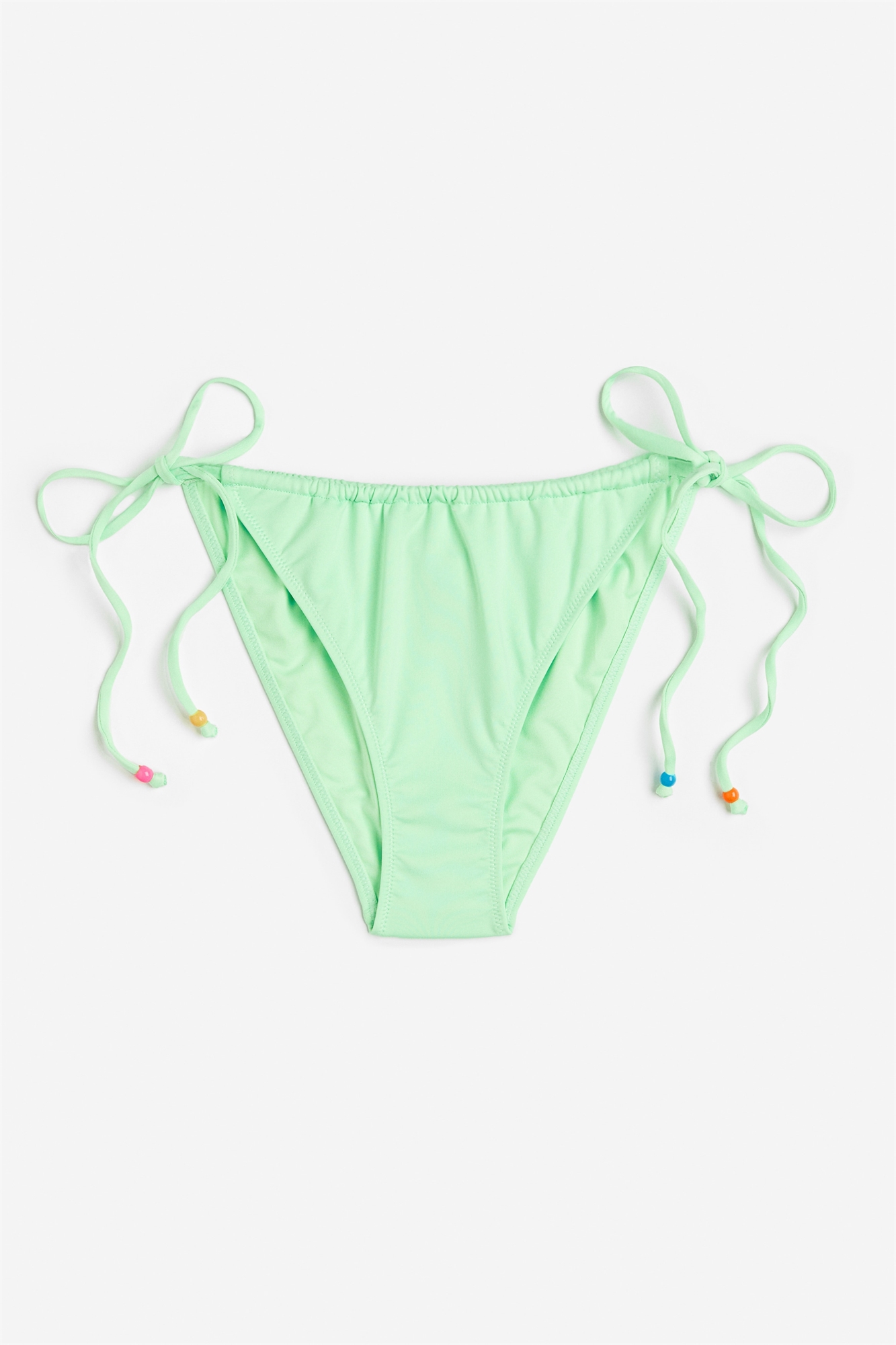 Трусики-бикини на подкладке, с заниженной талией, завязками по бокам и вырезом сзади.