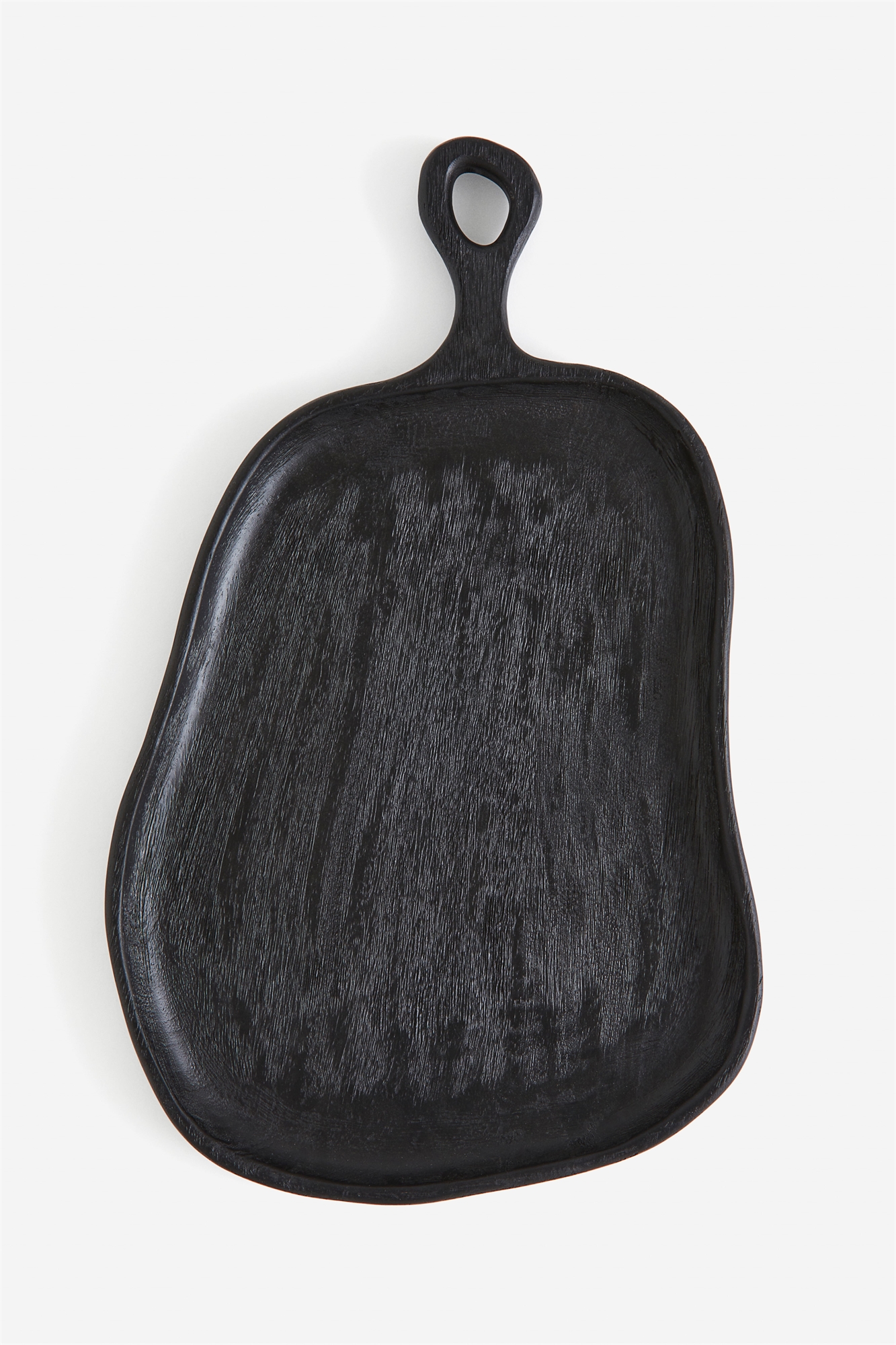 Сервировочный поднос из дерева манго придаст деревенский шарм вашему столу. Асимметричная форма с низким бортиком и петлей в верхней части для подвешивания, когда он не используется. Ширина 30 см. Длина 49 см.