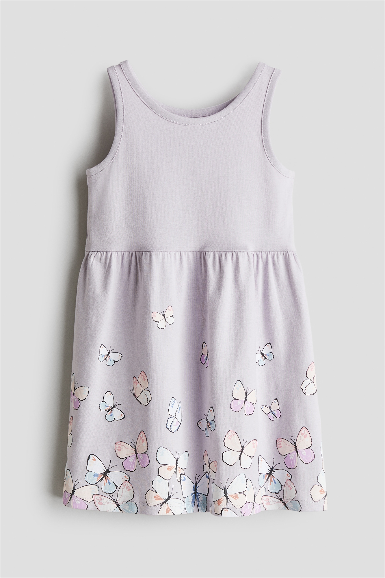 Удобное платье без рукавов из мягкого хлопкового джерси с рисунком, со сборкой на талии и расклешенной юбкой.