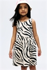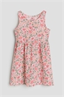 Удобное платье без рукавов из мягкого хлопкового джерси с рисунком, со сборкой на талии и расклешенной юбкой.