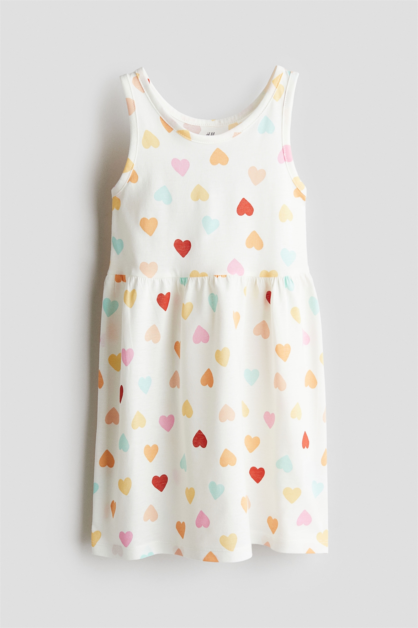 Удобное платье без рукавов из мягкого хлопкового джерси с рисунком, со сборкой на талии и расклешенной юбкой.