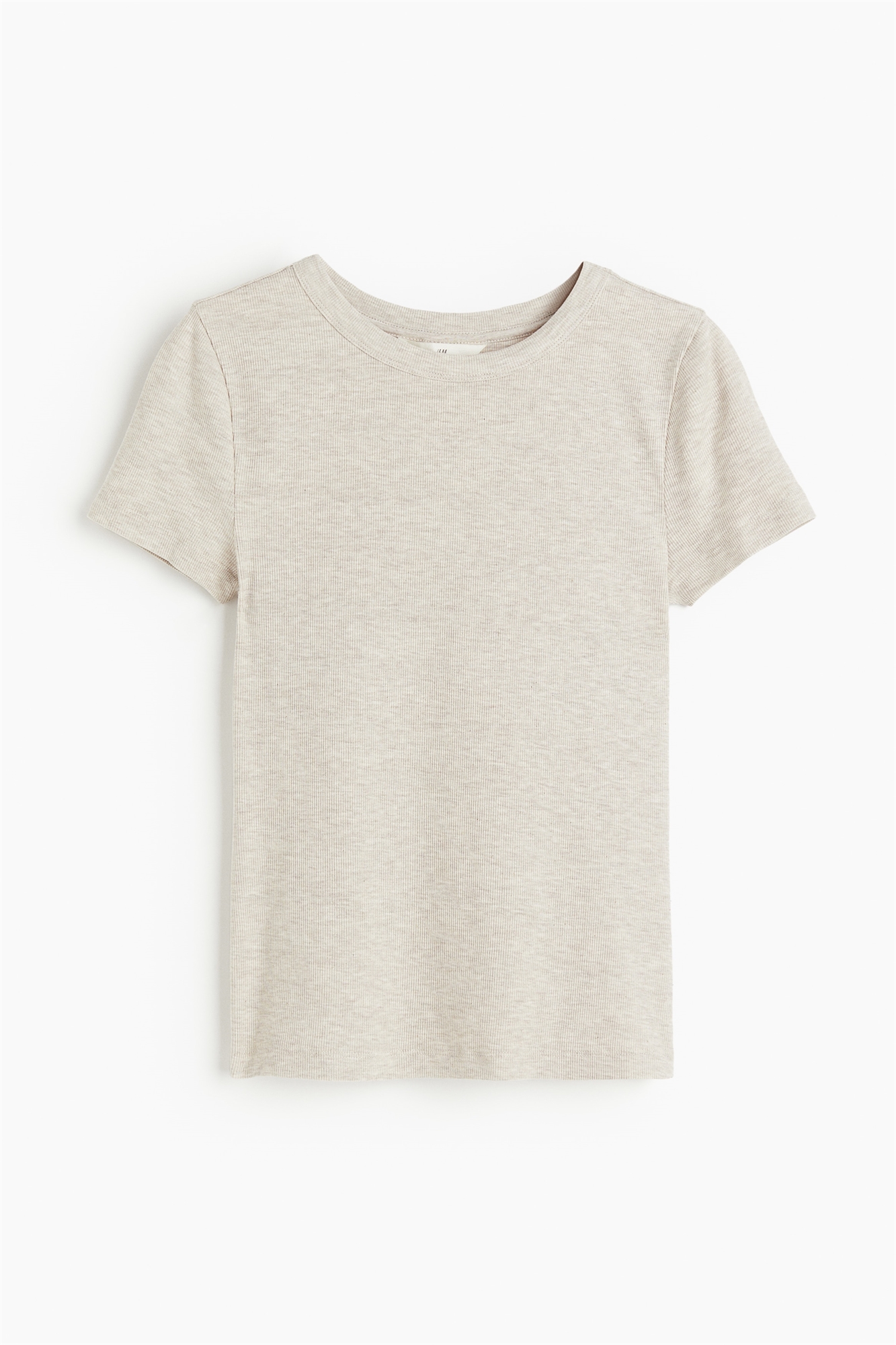 Облегающая футболка из мягкого джерси из смеси хлопка и модала с узкой окантовкой по вырезу горловины и прямым подолом.