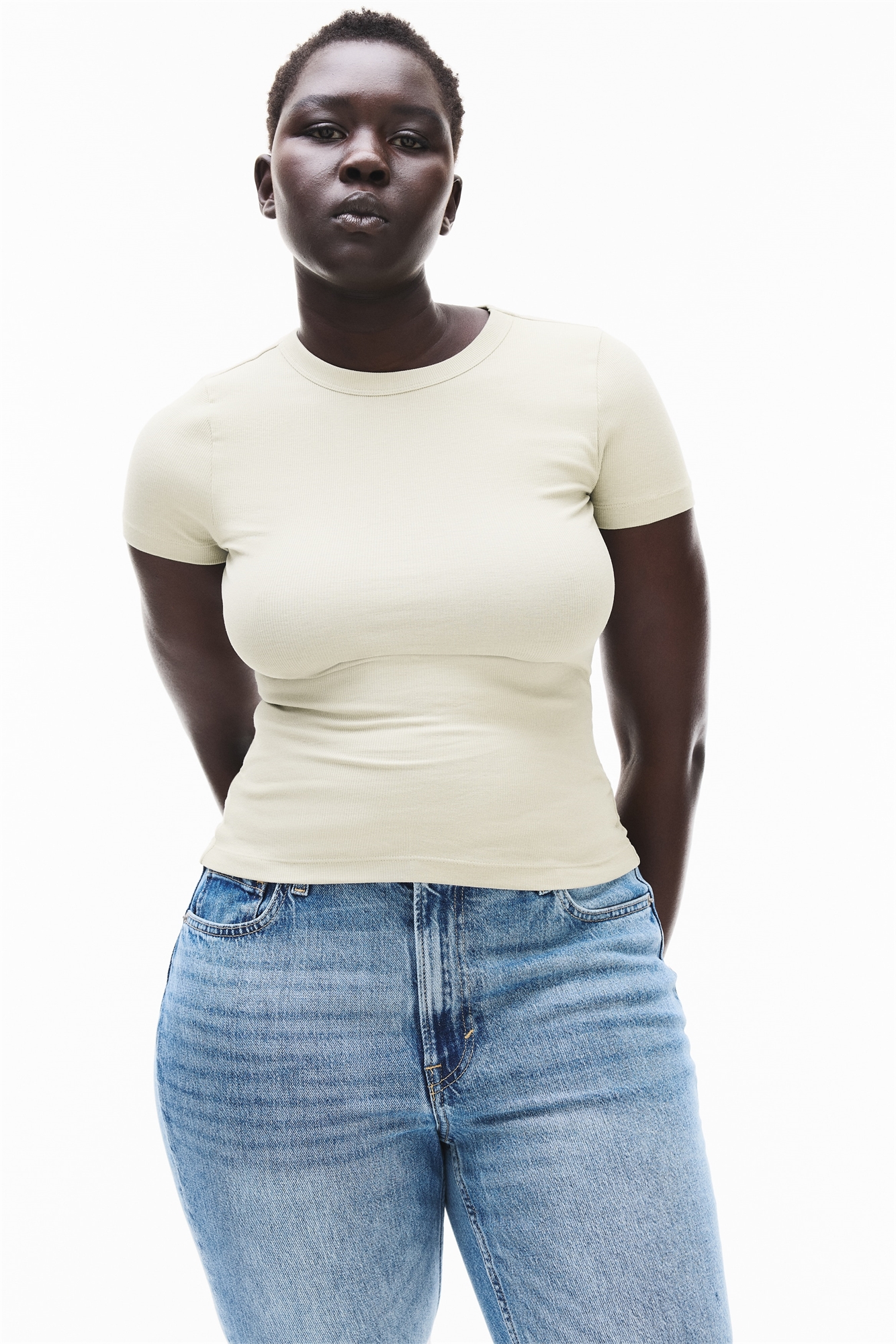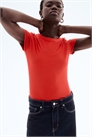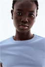 Облегающая футболка из мягкого джерси из смеси хлопка и модала с узкой окантовкой по вырезу горловины и прямым подолом.