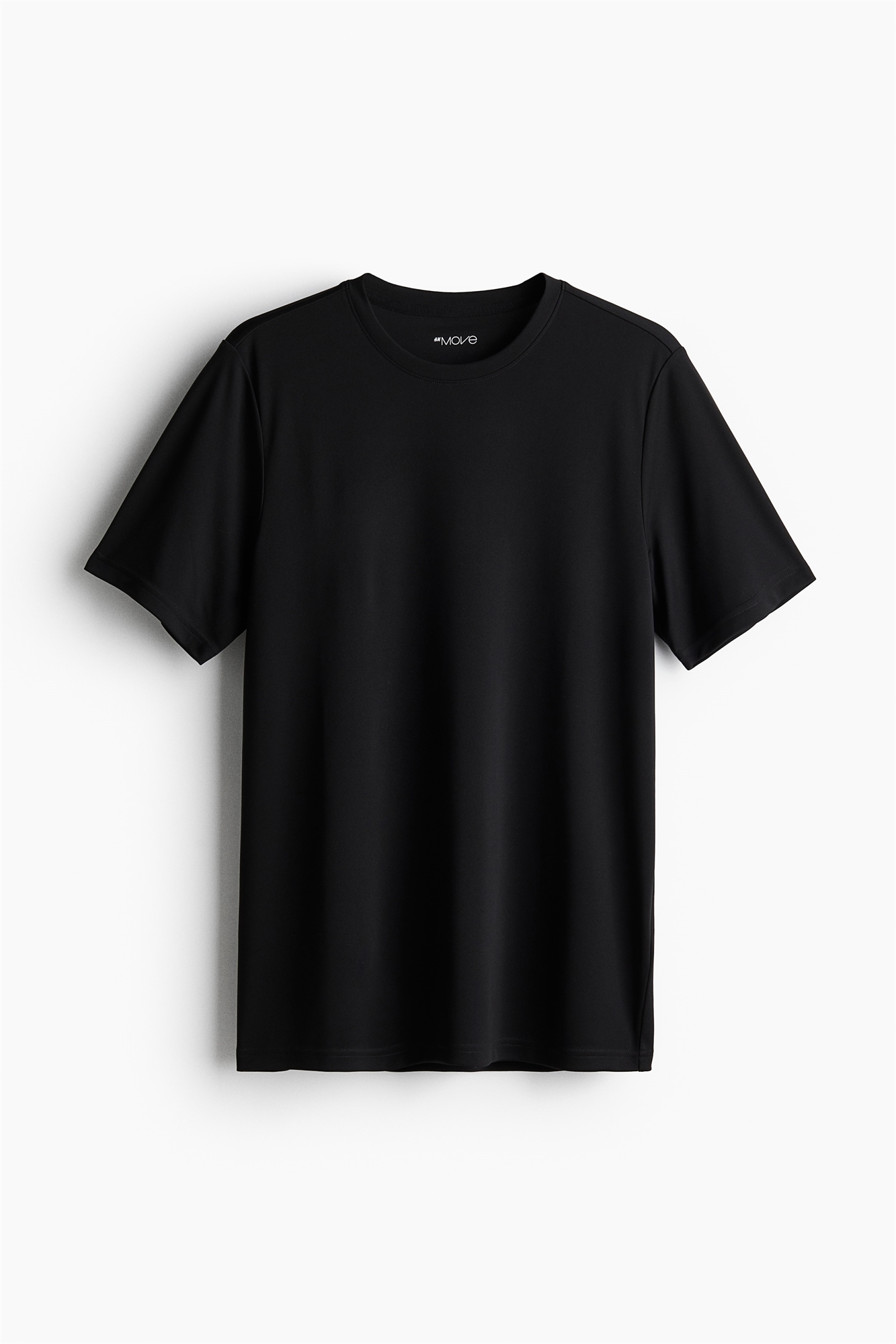 Спортивный топ из функциональной ткани DryMove™, которая отводит влагу от кожи, обеспечивая комфортную сухость во время движения. Регулярный крой с круглым вырезом и короткими рукавами.