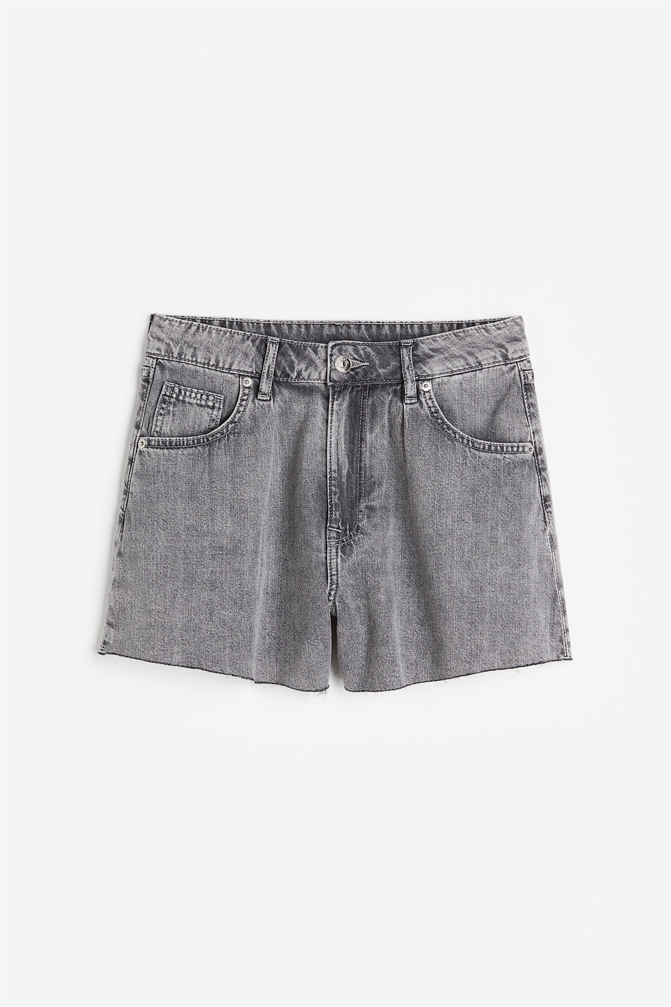 Шорты с 5 карманами из жесткого хлопкового денима с высокой талией, складками в верхней части, застежкой на молнию и пуговицу и необработанными краями.