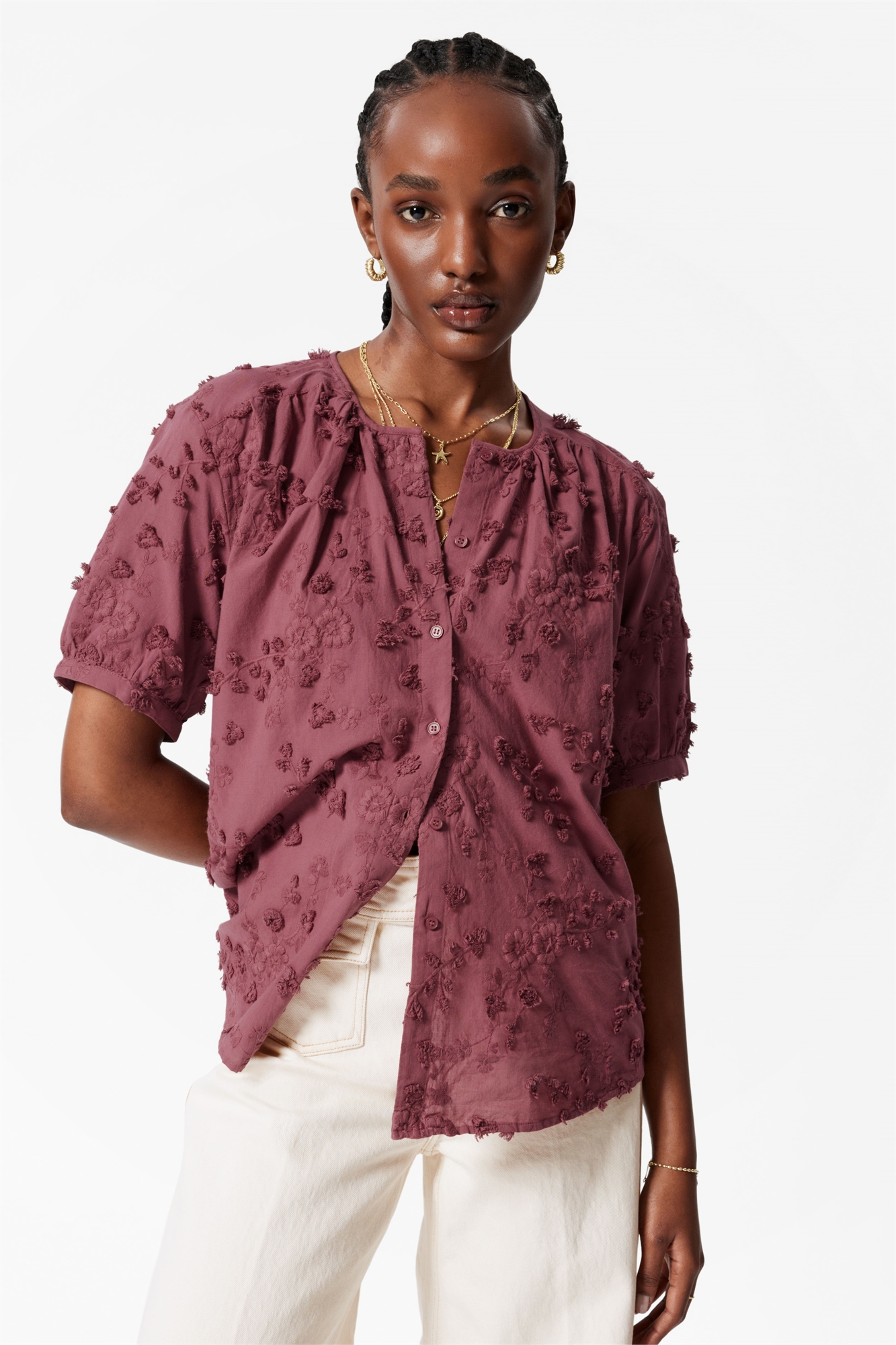Блузка больших размеров с короткими пышными рукавами с манжетами на пуговицах, круглым вырезом и застежкой на пуговицы. Длина блузки: 64 см / 25,2 дюйма (EU 36 / UK 8 / US 4)