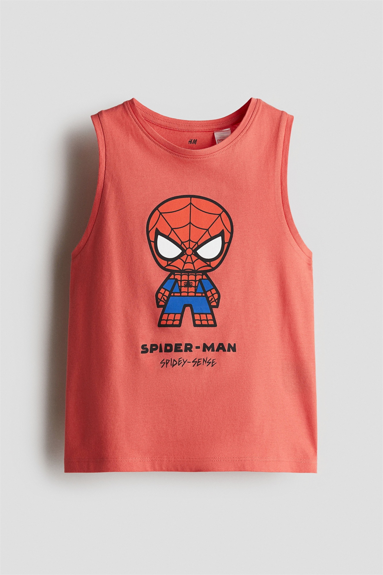 Жилет из мягкого хлопкового джерси с принтом спереди. Ребристая отделка по вырезу горловины и проймам.