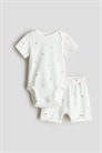 Комплект из комбинезона с короткими рукавами и шорт из супермягкого хлопкового джерси. Боди с кнопками в промежности и сборчатыми швами вокруг ножек. Шорты с удобной и плотной посадкой вокруг подгузника.