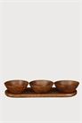 Миски Tomar с подносом входят в коллекцию Mica Decorations и идеально подходят для подачи закусок. Миски изготовлены из 100% FSC-сертифицированной натуральной древесины манго и имеют естественный светло-коричневый цвет. Миски продаются в комплекте: три маленькие миски и овальный поднос. Миски очень подходят для подачи закусок тапас! Размеры: L35 x W12 x H5 см.