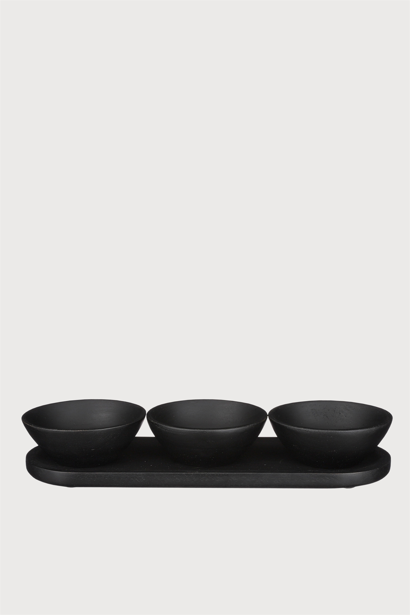 Миски Tomar с подносом входят в коллекцию Mica Decorations и идеально подходят для подачи закусок. Миски изготовлены из 100% FSC-сертифицированной натуральной древесины манго и имеют естественный светло-коричневый цвет. Миски продаются в комплекте: три маленькие миски и овальный поднос. Миски очень подходят для подачи закусок тапас! Размеры: L35 x W12 x H5 см.