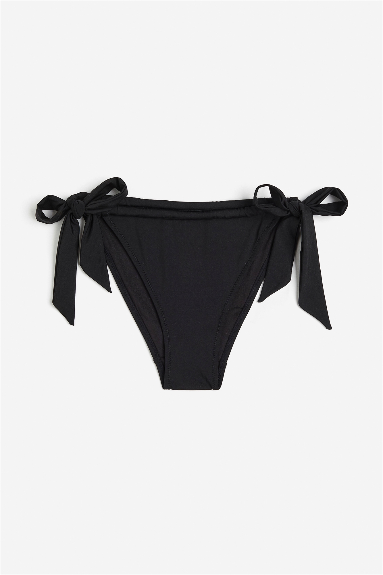 Трусики-бикини на подкладке, с заниженной талией, завязками по бокам и средней степенью защиты сзади.