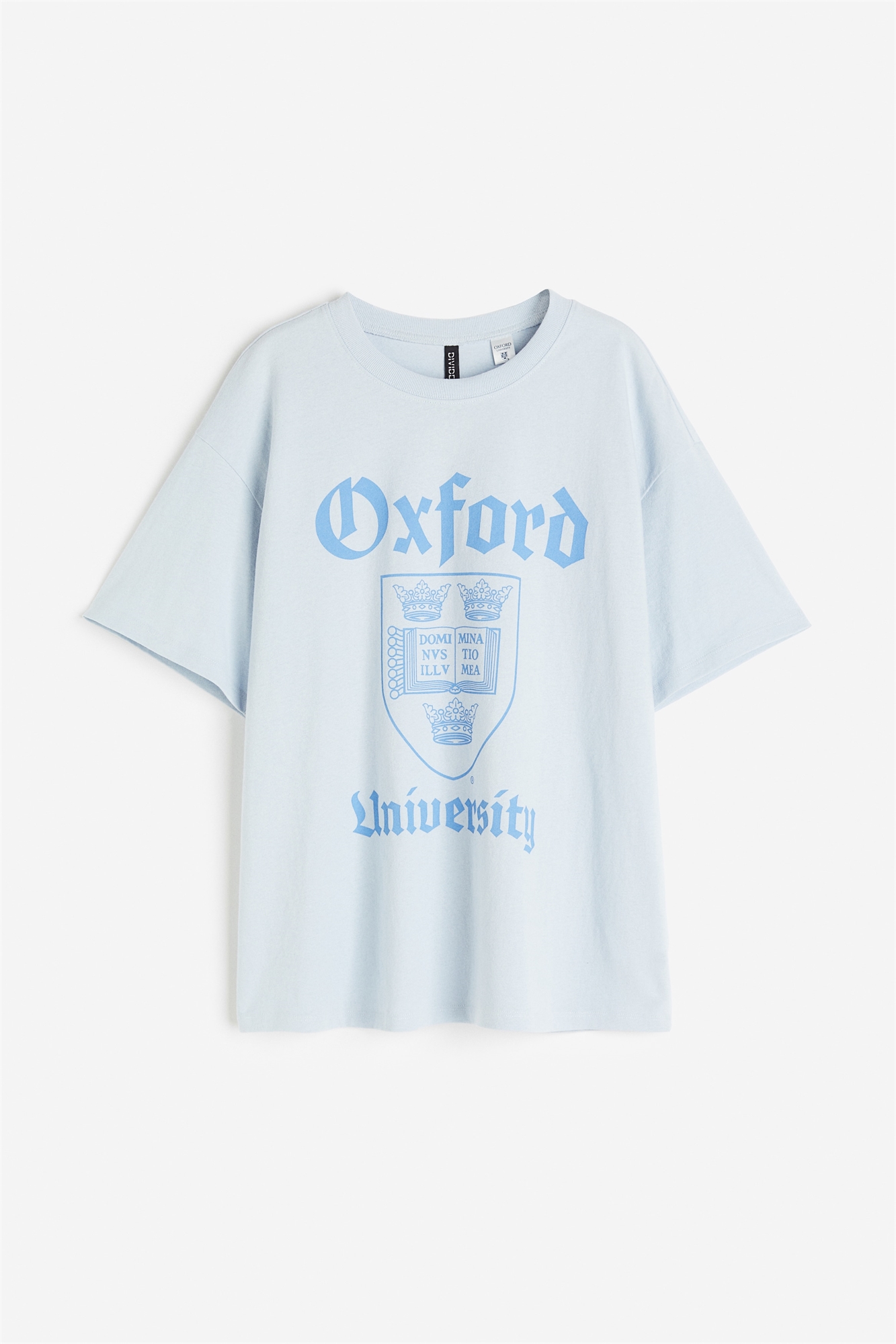 Футболка оверсайз из мягкого хлопкового джерси с принтом спереди. Ребристая отделка по вырезу горловины и спущенные плечи.