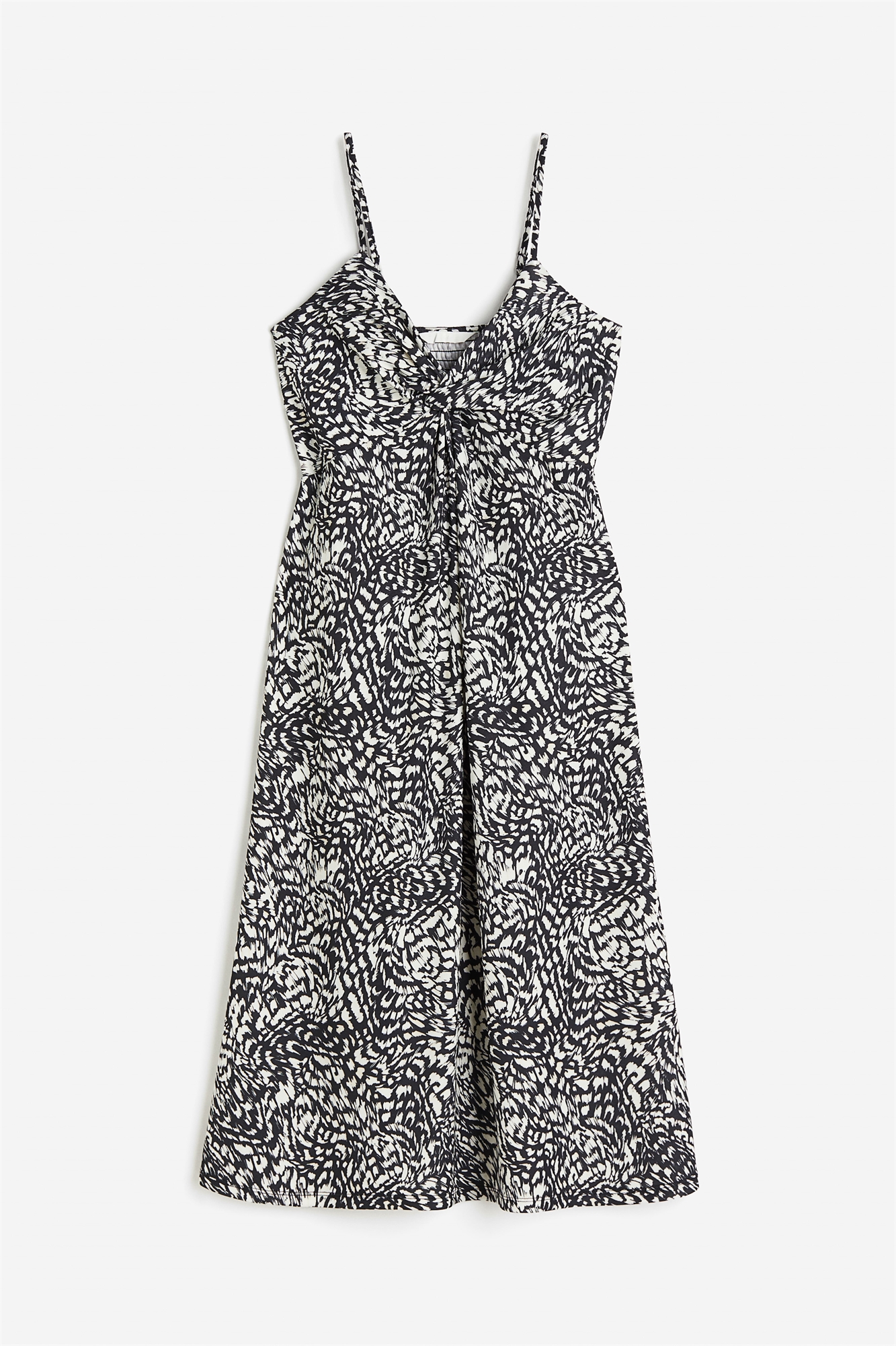 Платье длиной до колена из фактурного джерси с узкими регулируемыми бретелями, V-образным вырезом и перекрученной деталью по центру бюста. Задняя панель с мокасинами. На подкладке в области бюста.