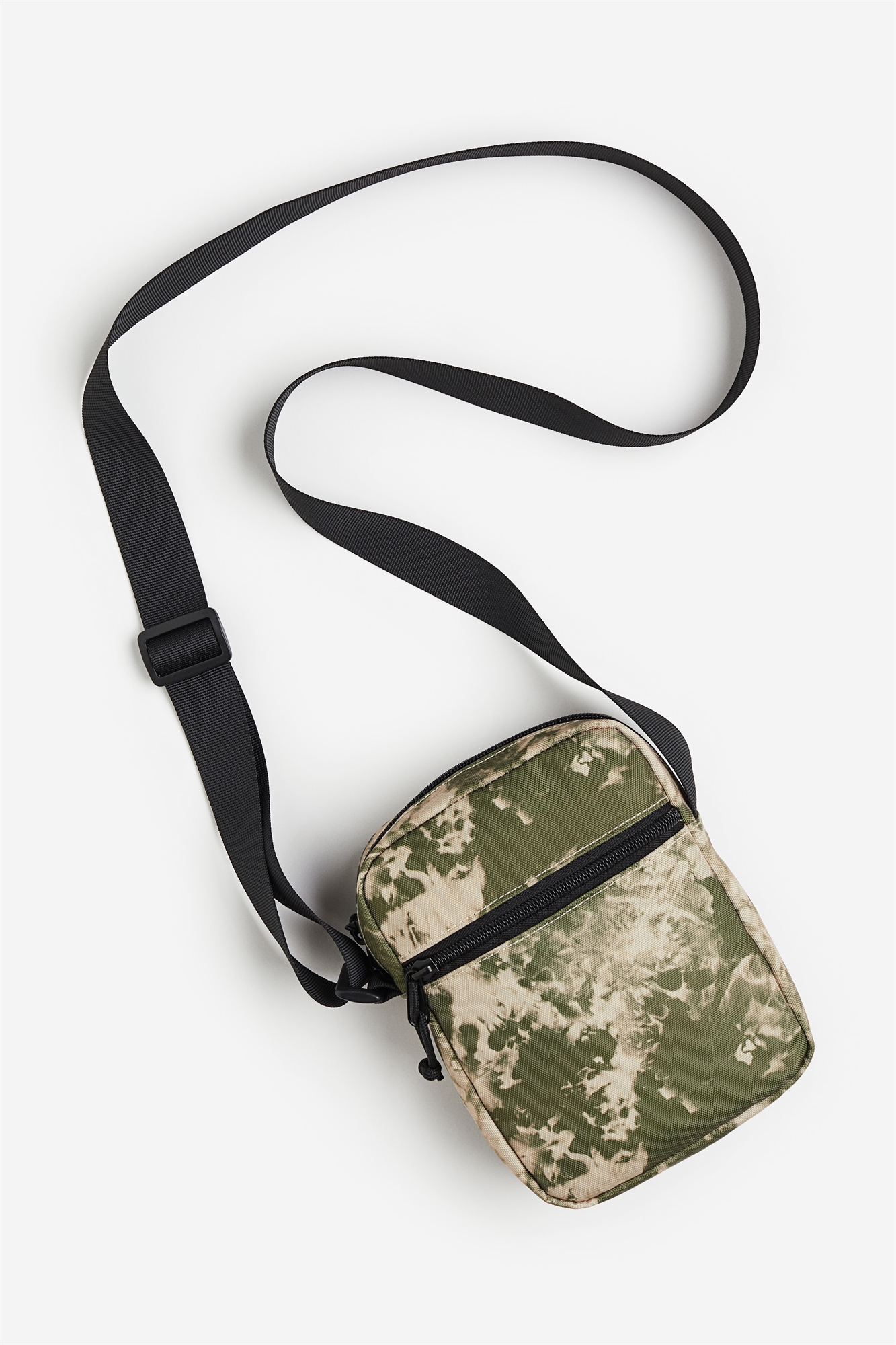 Небольшая сумка через плечо из тканого материала с двусторонней застежкой-молнией и регулируемым плечевым ремнем. Два внешних отделения, одно на молнии, и одно внутреннее отделение. На подкладке. Глубина 4,5 см. Ширина 14,5 см. Высота 19 см.