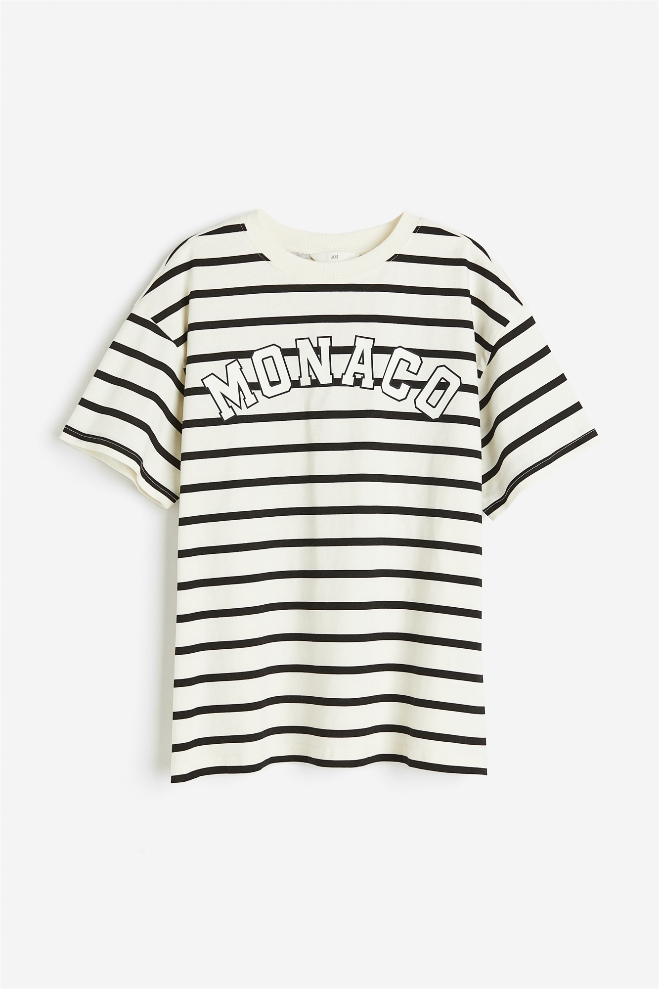 Футболка из мягкого хлопкового джерси с принтом спереди. Свободный крой, круглый вырез с ребристой отделкой и спущенные плечи.