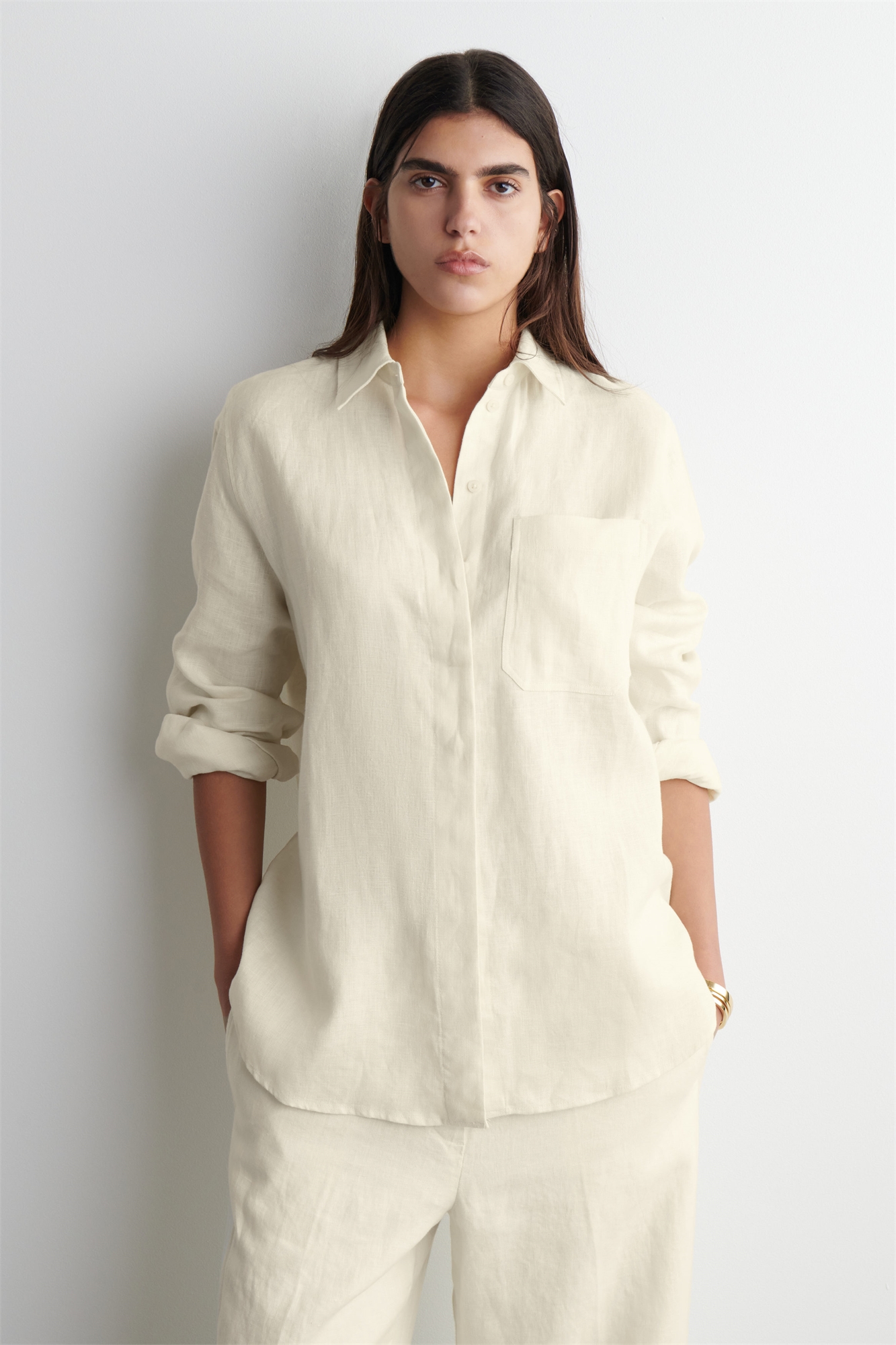 Эта классическая рубашка, представленная в свежем сиреневом оттенке, изготовлена из чистого льна, дышащего, легкого и имеющего естественную текстуру. Она сшита в стиле оверсайз, который идеально подходит для ношения поверх танкини, когда температура повышается, и имеет заостренный воротник, накладной карман и изогнутый ступенчатый подол. Сочетайте его с подходящими брюками или выбирайте рубашку с коротким рукавом в погожие дни. Завышенная посадкаЗастежка на пуговицахПереработанный лен изготавливается из отходов прядильного производства или отходов раскроя ткани в процессе производства. Отходы механически перерабатываются и прядутся в новую пряжу Материал: 70% льна, 30% переработанного льна. Без учета отделки / Машинная стирка Длина по спинке для размера EU 36 составляет 78 см / Модель носит размер EU 36