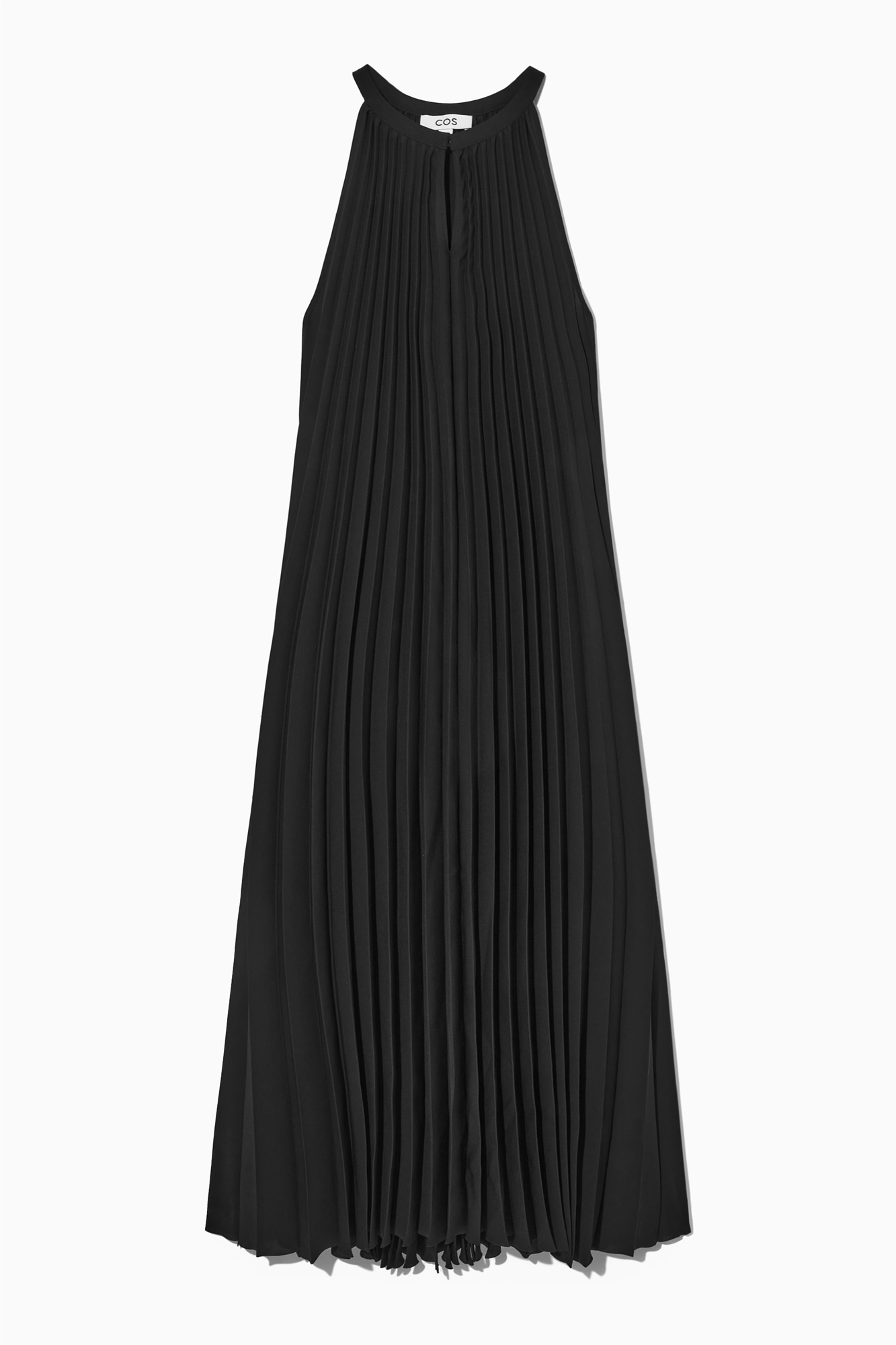 Это черное платье-миди из нашей коллекции весна-лето 2023 украшено точными складками, создающими объемный, струящийся силуэт. Изготовленное из переработанного полиэстера с едва заметным блеском, оно имеет вырез халтер и вырез-ключ, который можно носить открытым или застегивать на незаметную пуговицу. Переработанный полиэстер, являющийся лучшей альтернативой обычному полиэстеру, изготавливается из отходов до и после переработки 100% переработанного полиэстера / Машинная стирка Длина по спинке для размера EU 36 составляет 115 см / Модель носит размер EU 36