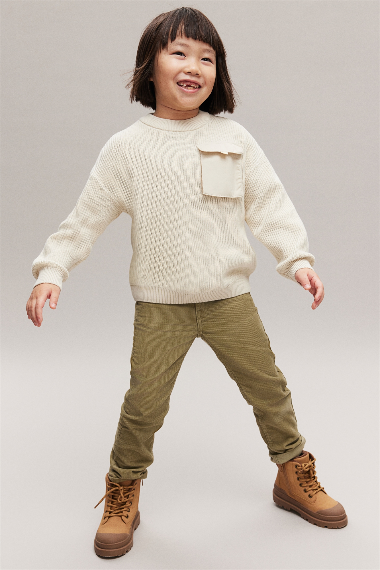 Брюки из хлопкового вельвета с зауженной посадкой по бедрам, ляжкам и штанинам. Регулируемый эластичный пояс, ширинка на молнии и застежка на кнопки, передние и задние карманы.