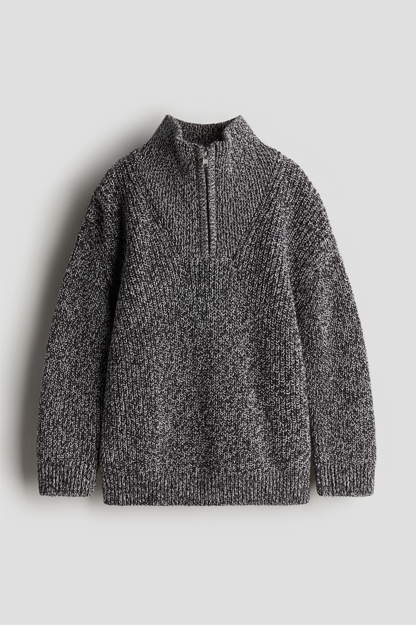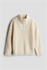 Джемпер из мягкого хлопка с высоким воротником-стойкой и застежкой на молнию с защитой подбородка от натирания. Свободный крой с опущенными плечами, длинными рукавами и окантовкой на воротнике, манжетах и подоле.