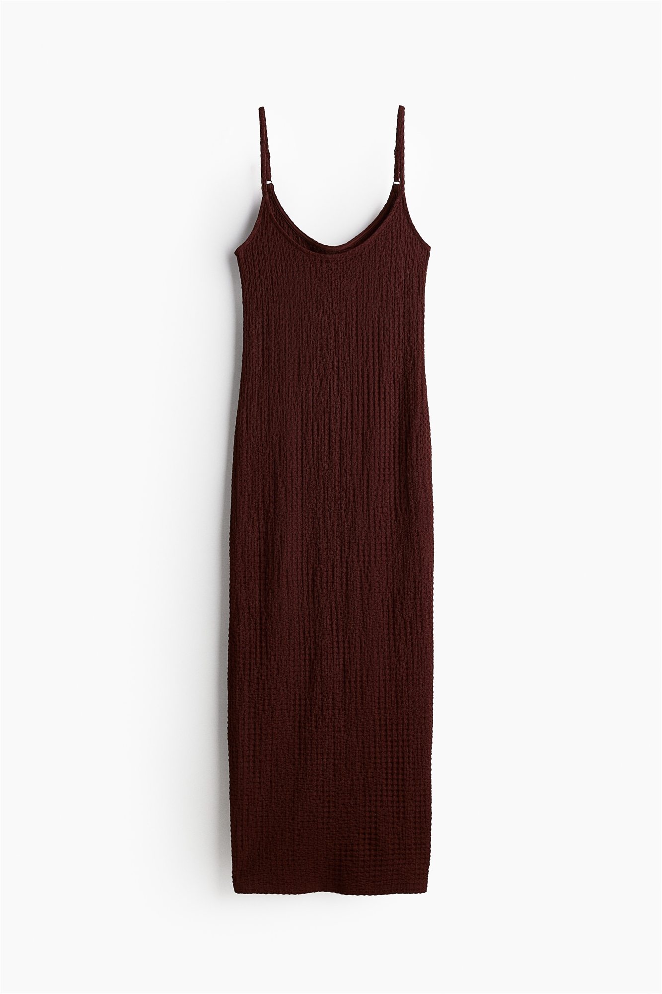 Приталенное платье длиной до середины бедра из мятого джерси без рукавов с узкими регулируемыми бретелями.