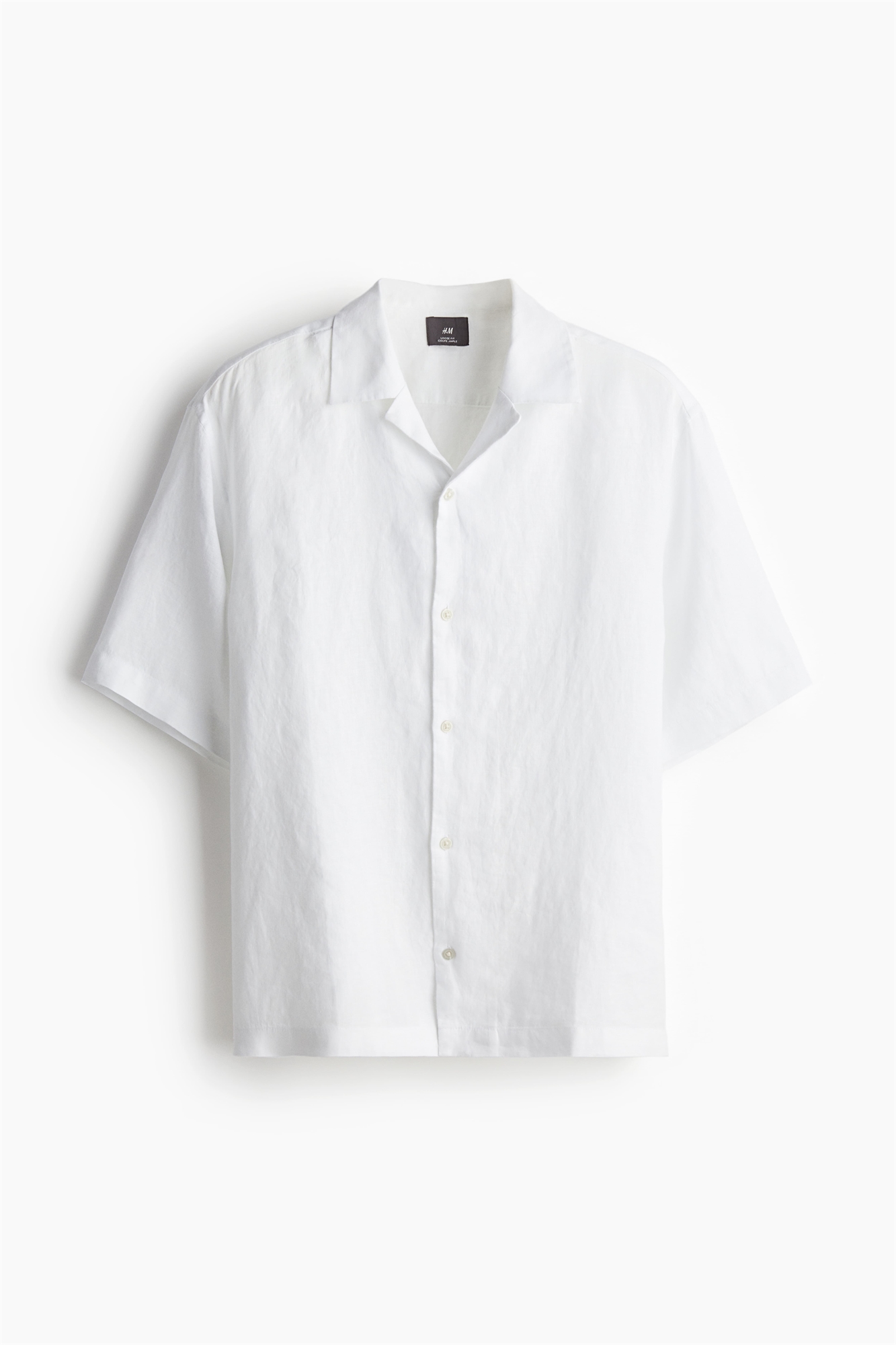Рубашка свободного кроя из воздушного льна с отложным воротником, французским передом и короткими рукавами. Сзади иголки и прямой подол. Ткань из льна хорошо пропускает воздух, прекрасно гладится и мнется, а также смягчается со временем.
