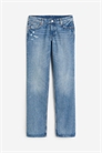 Джинсы с 5 карманами из жесткого хлопкового денима, который сначала кажется твердым, но затем смягчается и ослабевает при носке. Прямые штанины с обычной посадкой от талии до бедер и более свободным, прямым кроем от бедер до подола. Заниженная талия с ширинкой на молнии и пуговице. Удлиненная длина, созданная для того, чтобы ниспадать по ноге с эффектом укладки. От простого до вызывающего - этот фасон всегда к лицу.