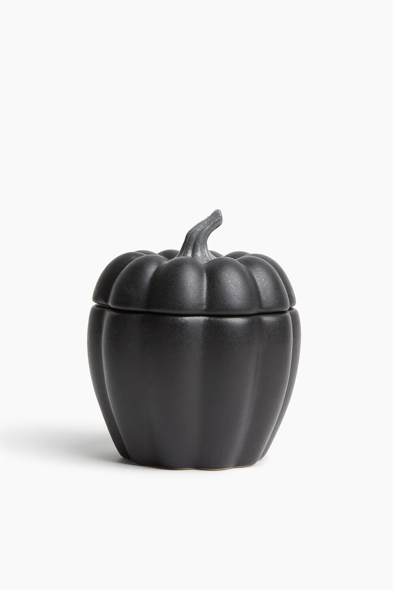 Шкатулка с крышкой из глазурованного керамогранита в форме тыквы. Высота 11 см. Ширина 11,5 см.