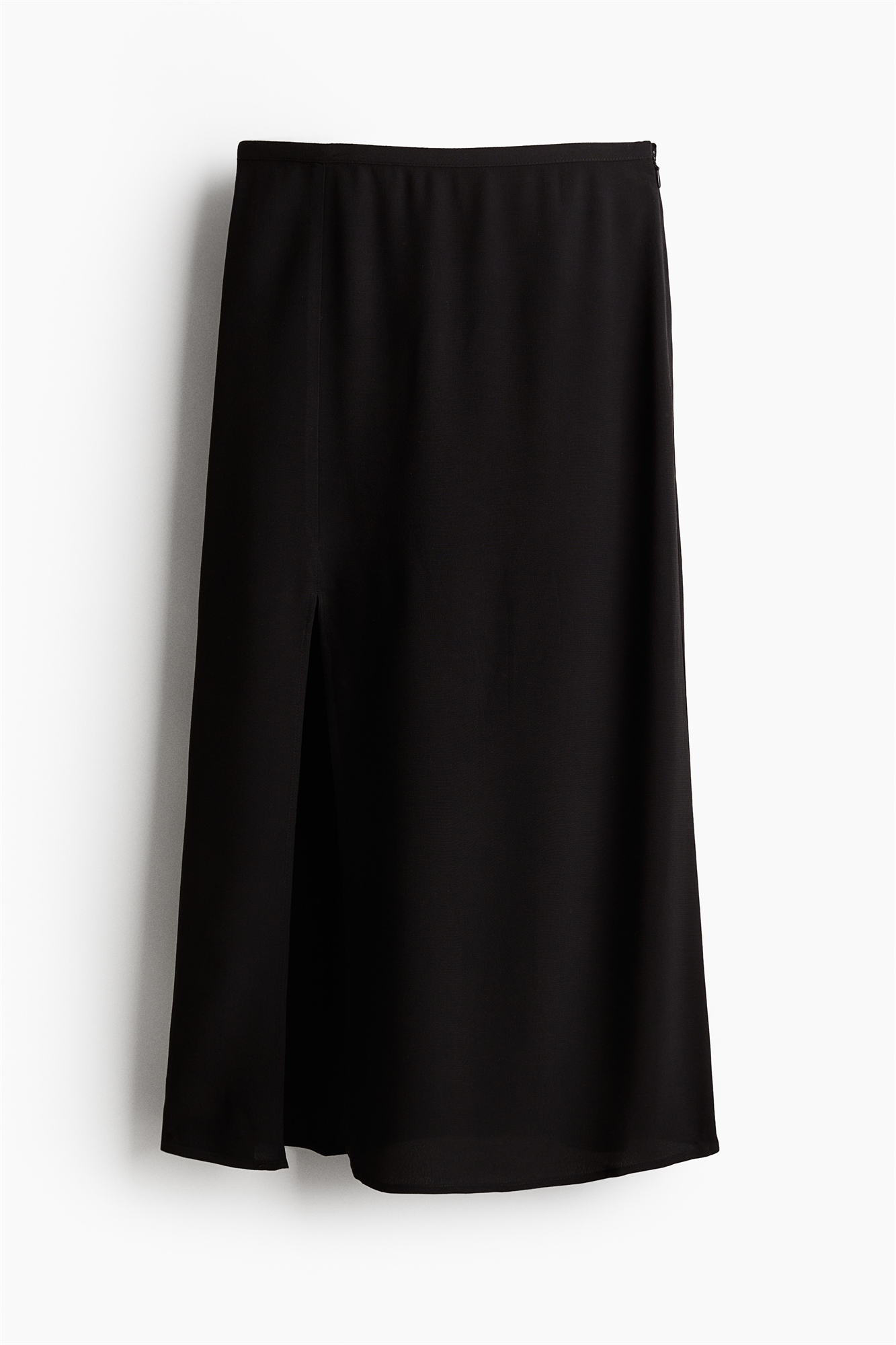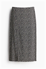 Юбка длиной до колена из вискозного крепа с легкой формой А-линии. Заниженная талия, потайная застежка на молнию и крючок с глазом с одной стороны. Подол прямого кроя с высоким разрезом спереди. Без подкладки.