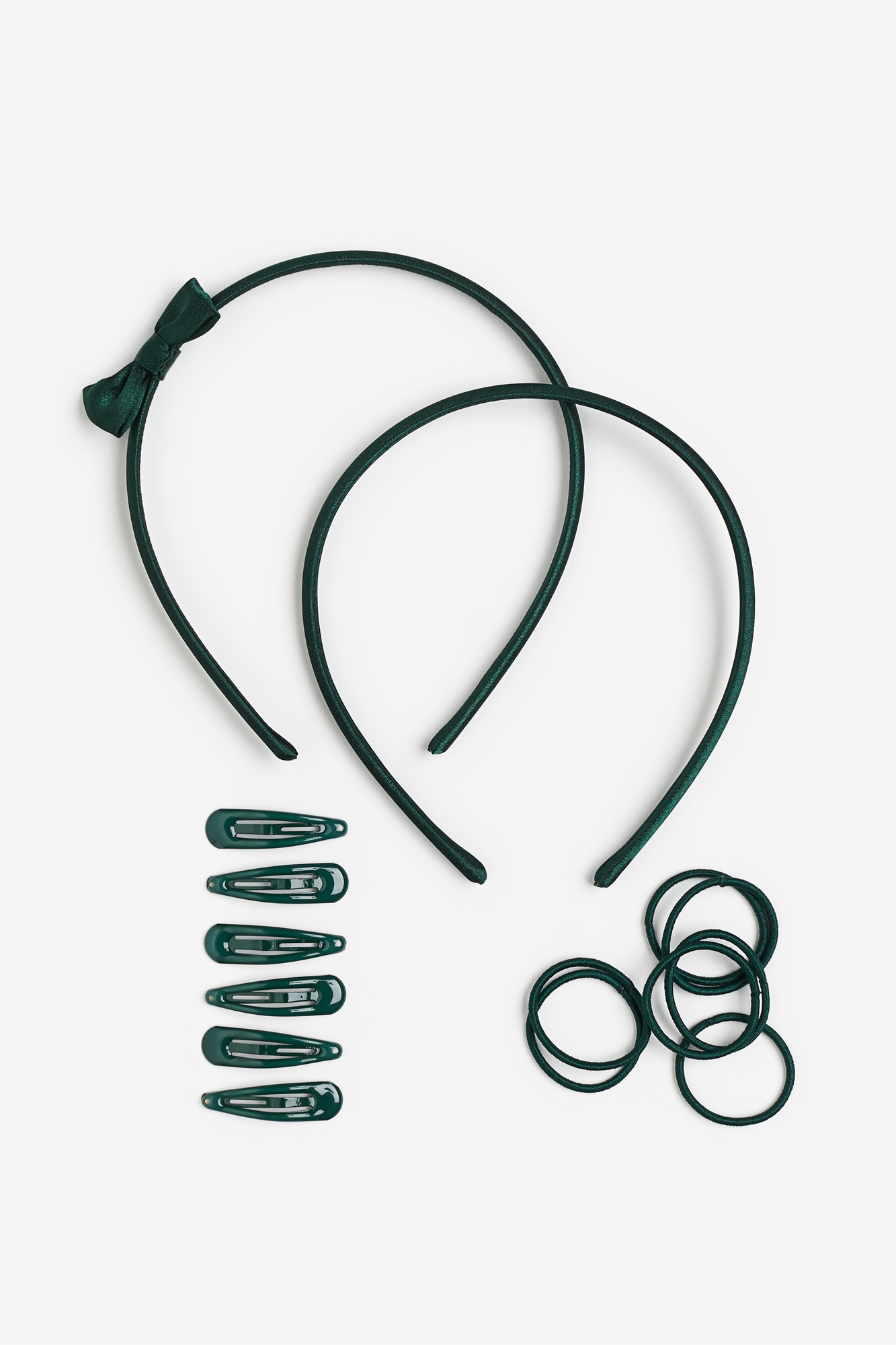 Школьный набор для волос состоит из подходящих аксессуаров: двух узких лент Alice из атласа с декоративными бантами, шести металлических заколок и восьми узких резинок для волос без металлических зажимов. Длина заколок для волос 4 см. Окружность резинок для волос 10 см.
