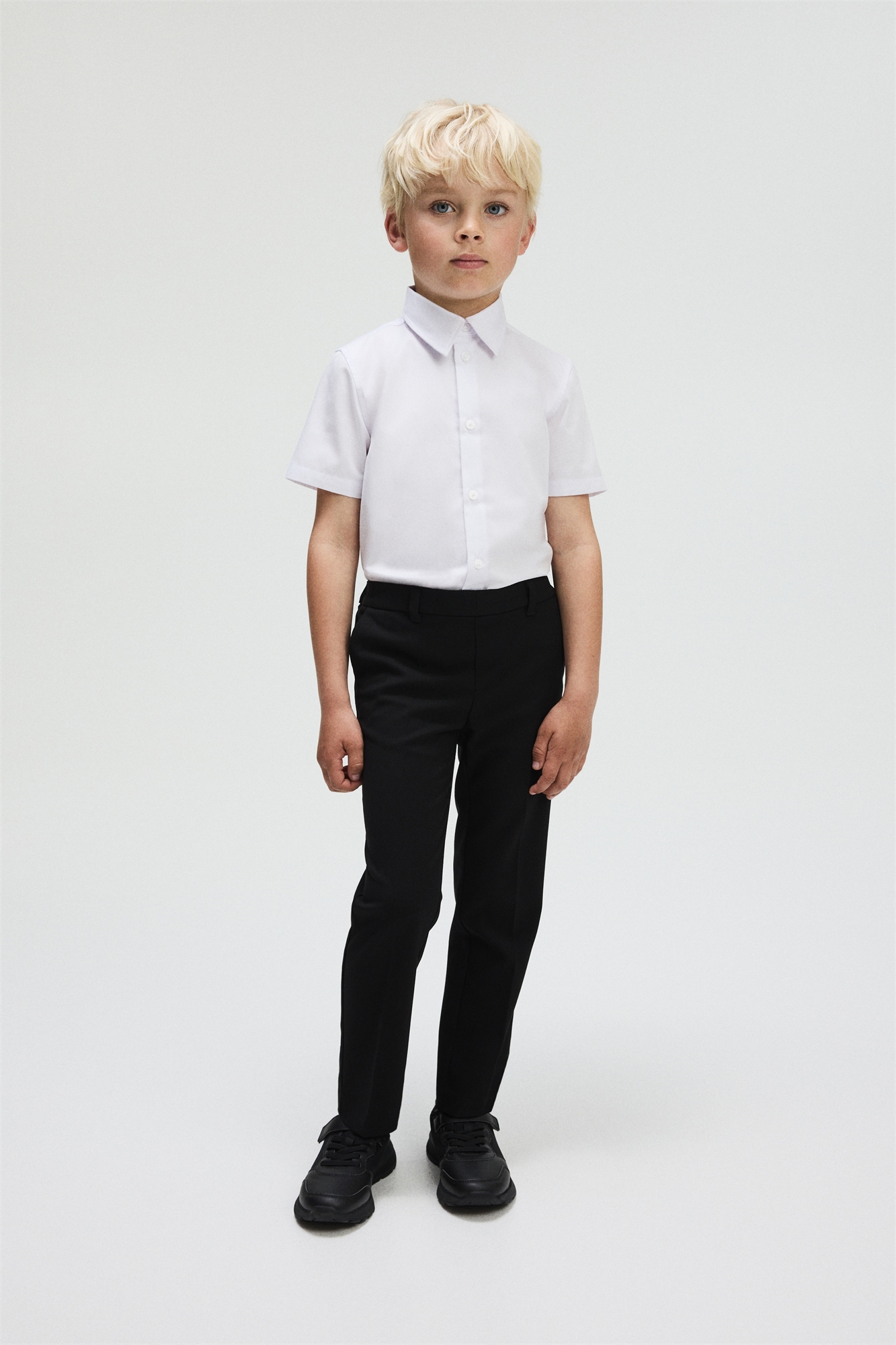 Школьные брюки Regular-Fit из тканого материала с прямыми ногами. Регулируемая резинка на талии, фальшивая ширинка, диагональные боковые карманы и фальшивый накладной карман сзади.