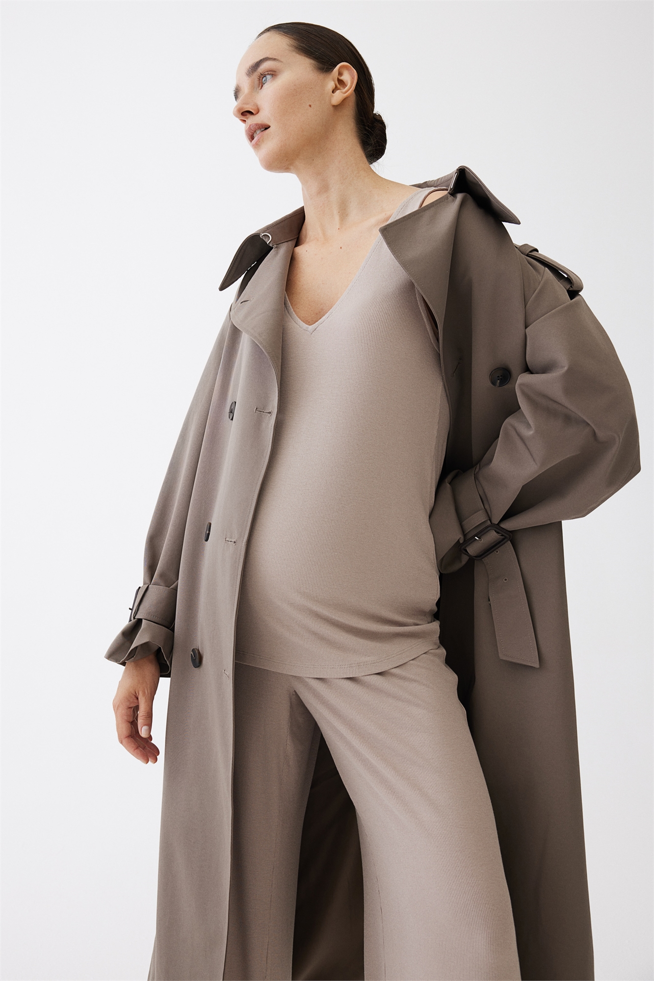 Комплект из жилета и брюк из мягкого ребристого трикотажа. Топ с V-образным вырезом и широкими бретелями. Брюки с высокой талией, узкой эластичной резинкой для комфортной посадки на животике. Широкие прямые ноги.