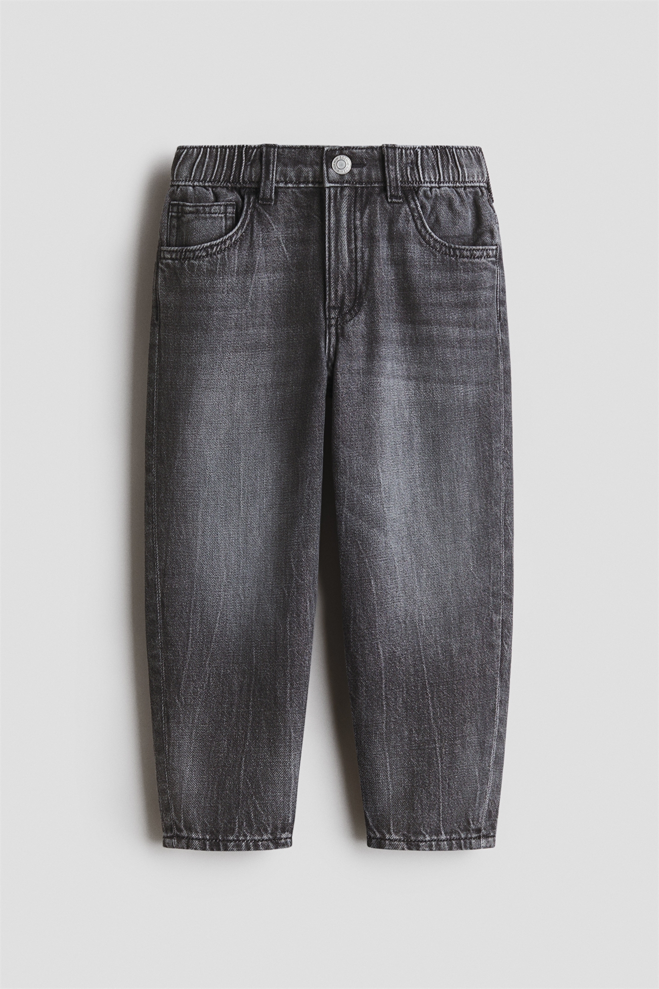 Джинсы с 5 карманами из моющегося хлопкового денима со свободной посадкой по бедрам и ляжкам. Регулируемая резинка на талии, ширинка на молнии с пуговицей и расклешенные ножки с коническими каблуками.