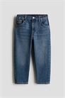 Джинсы с 5 карманами из моющегося хлопкового денима со свободной посадкой по бедрам и ляжкам. Регулируемая резинка на талии, ширинка на молнии с пуговицей и расклешенные ножки с коническими каблуками.