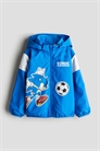 Ветровка из принтованного полотна со съемным капюшоном, воротником-стойкой и застежкой-молнией спереди с защитой подбородка от натирания. Слегка спущенные плечи и диагональные карманы спереди. Без подкладки.