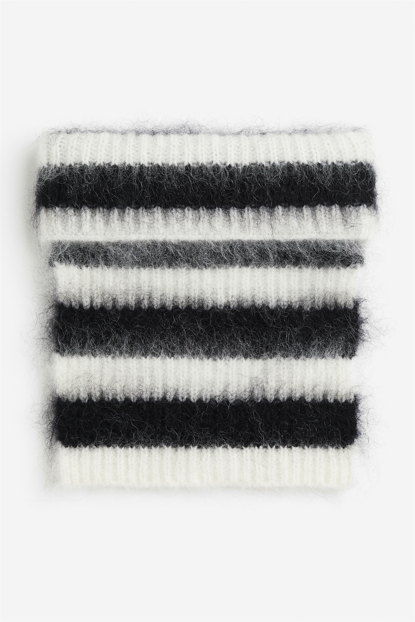 Шарф-труба из мягкого, пушистого трикотажа с добавлением мохера и шерсти. Горловина-поло и прямой подол с разрезом с каждой стороны для лучшей посадки на плечах.