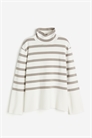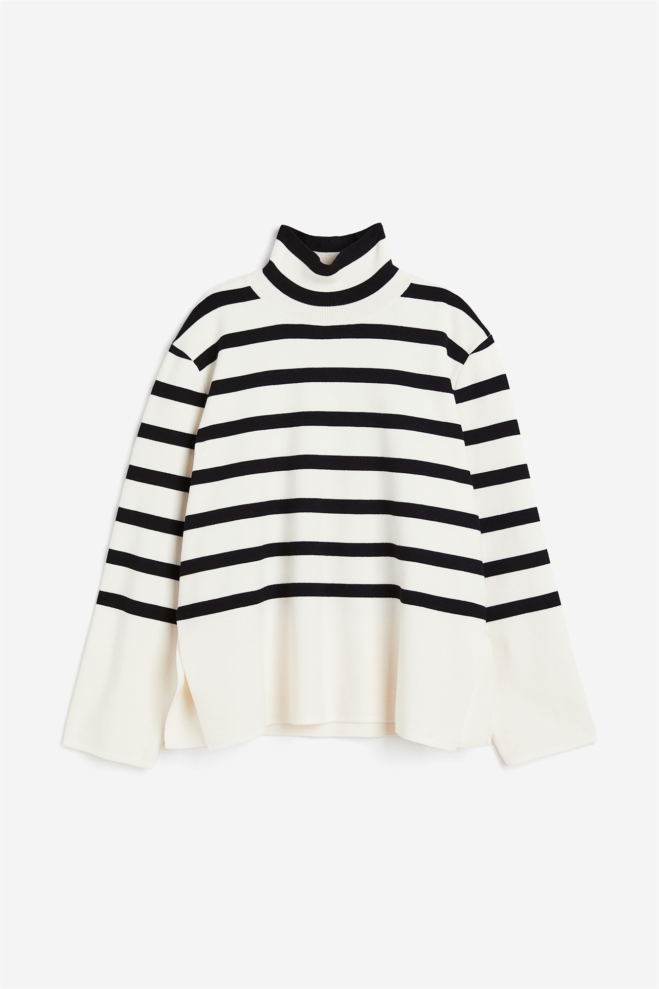 Джемпер с длинными рукавами из тонкого трикотажа, с горловиной в виде черепахи и прямым подолом с разрезом с каждой стороны.