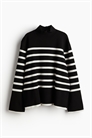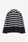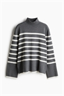 Джемпер с длинными рукавами из тонкого трикотажа, с горловиной в виде черепахи и прямым подолом с разрезом с каждой стороны.