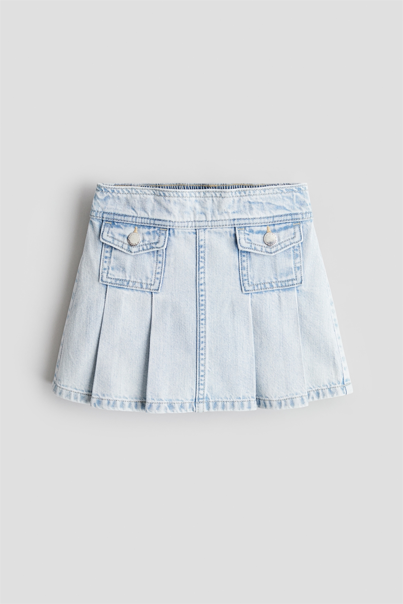 Юбка из прочного хлопкового денима с эластичным поясом сзади и вшитыми складками спереди.