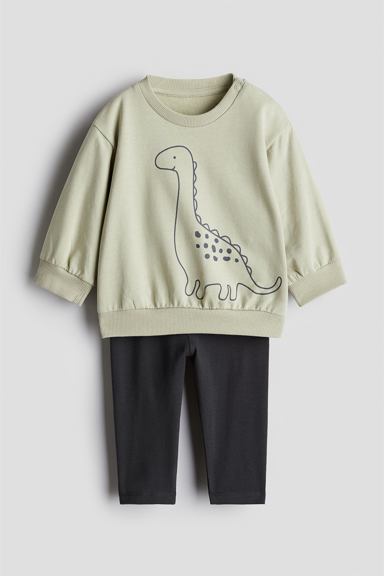Комплект из топа и леггинсов из мягкого хлопка. Топ с длинными рукавами из толстовки с мягкой начесанной внутренней стороной, кнопкой на одном плече (кроме размеров 2-4Y) и тесемками по вырезу, манжетам и подолу. Леггинсы из джерси с мягкой эластичной резинкой на талии.