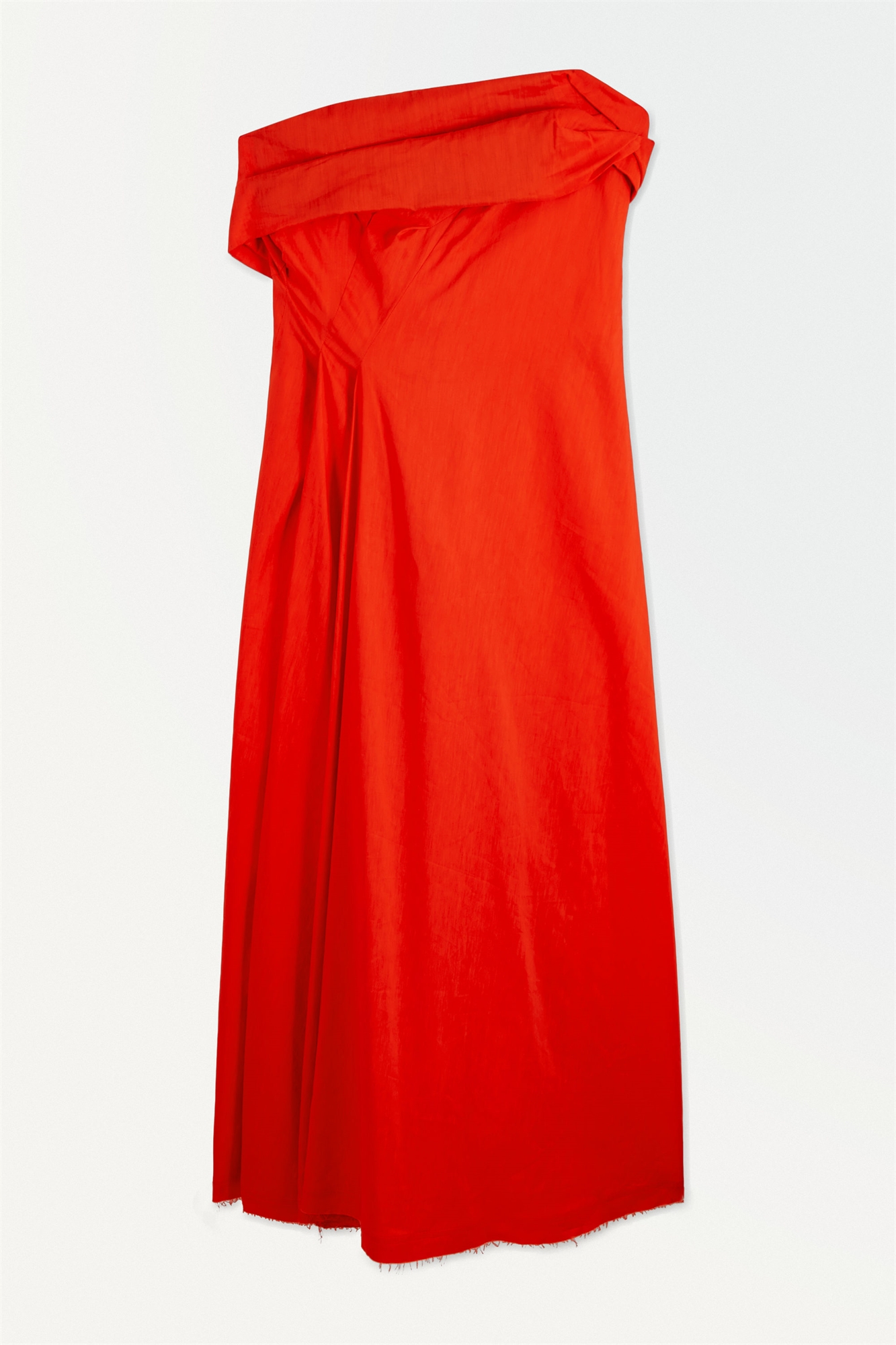 Эта вещь входит в коллекцию COS ATELIER, лимитированную капсулу, основанную на принципах роскоши и исключительного дизайна. CUT В этом платье ATELIER вы произведете настоящий фурор на своем следующем мероприятии. Платье с вырезом-бандо без бретелек, драпированным лифом, каскадом переходящим в плиссированную юбку в пол, которая лишь задевает верх босоножек. Повернитесь, и оно станет таким же потрясающим - обратите внимание на низкий вырез на спине, поддерживающий широкий пояс и искусные складки ткани, которые были точно приколоты нашей командой экспертов. Ткань Наши мастера протестировали бесчисленное количество тканей, прежде чем выбрали ткань из смеси льна и вискозы - первая придает ей прекрасную тактильность, а вторая позволяет легко и непринужденно драпироваться. Она представлена в ярком мандариново-оранжевом оттенке, который присутствует во всей капсуле. CRAFT Именно последние штрихи делают эту вещь такой особенной. Необработанный подол закреплен гросгрейном, что обеспечивает максимальную долговечность, а тщательная техника драпировки отсылает к высокой моде. 55% льна, 42% вискозы, 3% эластана / Сухая чистка Длина по спинке в размере EU 36 составляет 112 см / Модель носит размер EU 36