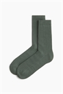 Носки из тонкого хлопкового трикотажа с ребристым голенищем и эластичным верхом.