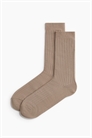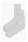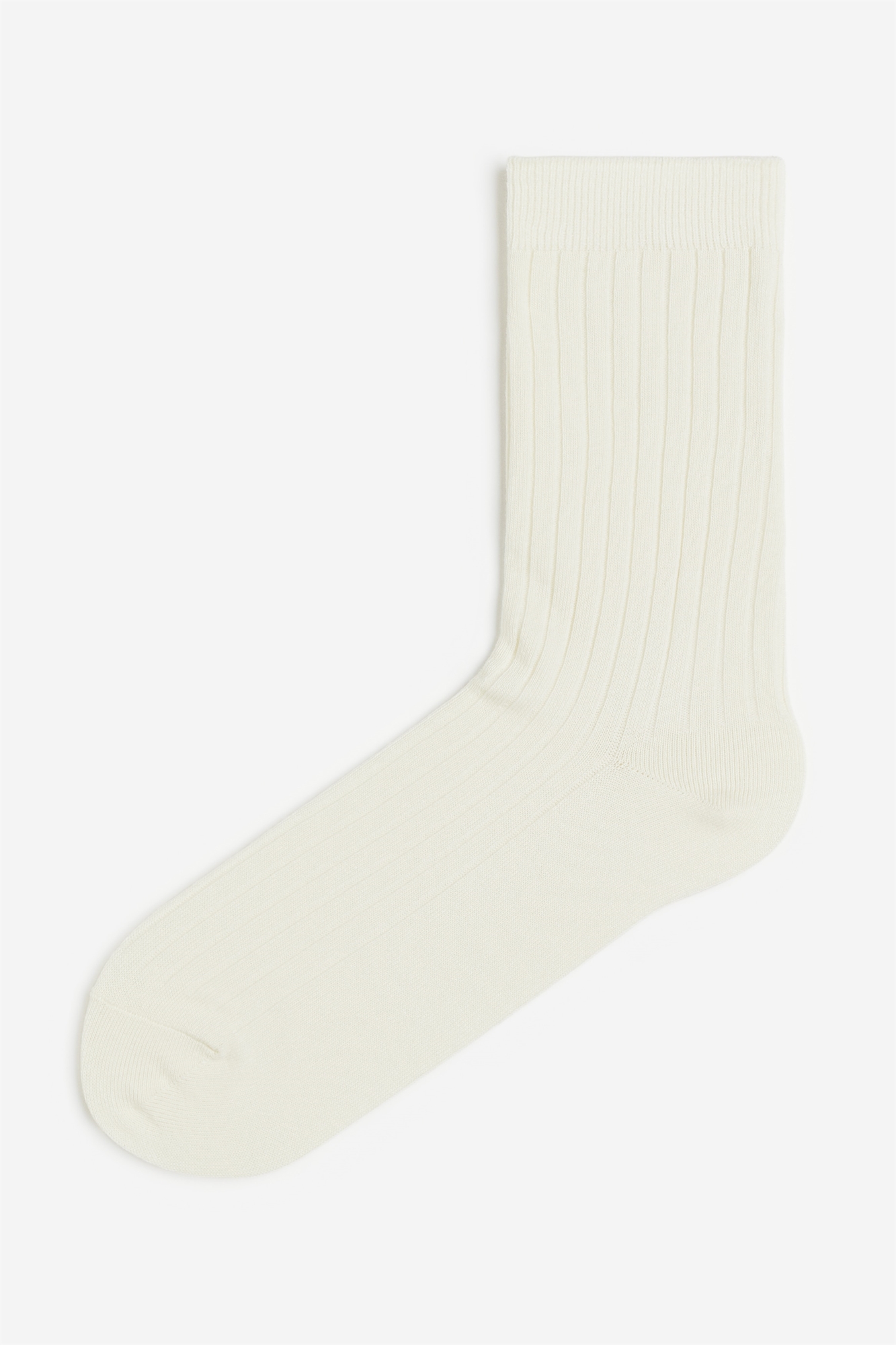 Носки из тонкого хлопкового трикотажа с ребристым голенищем и эластичным верхом.