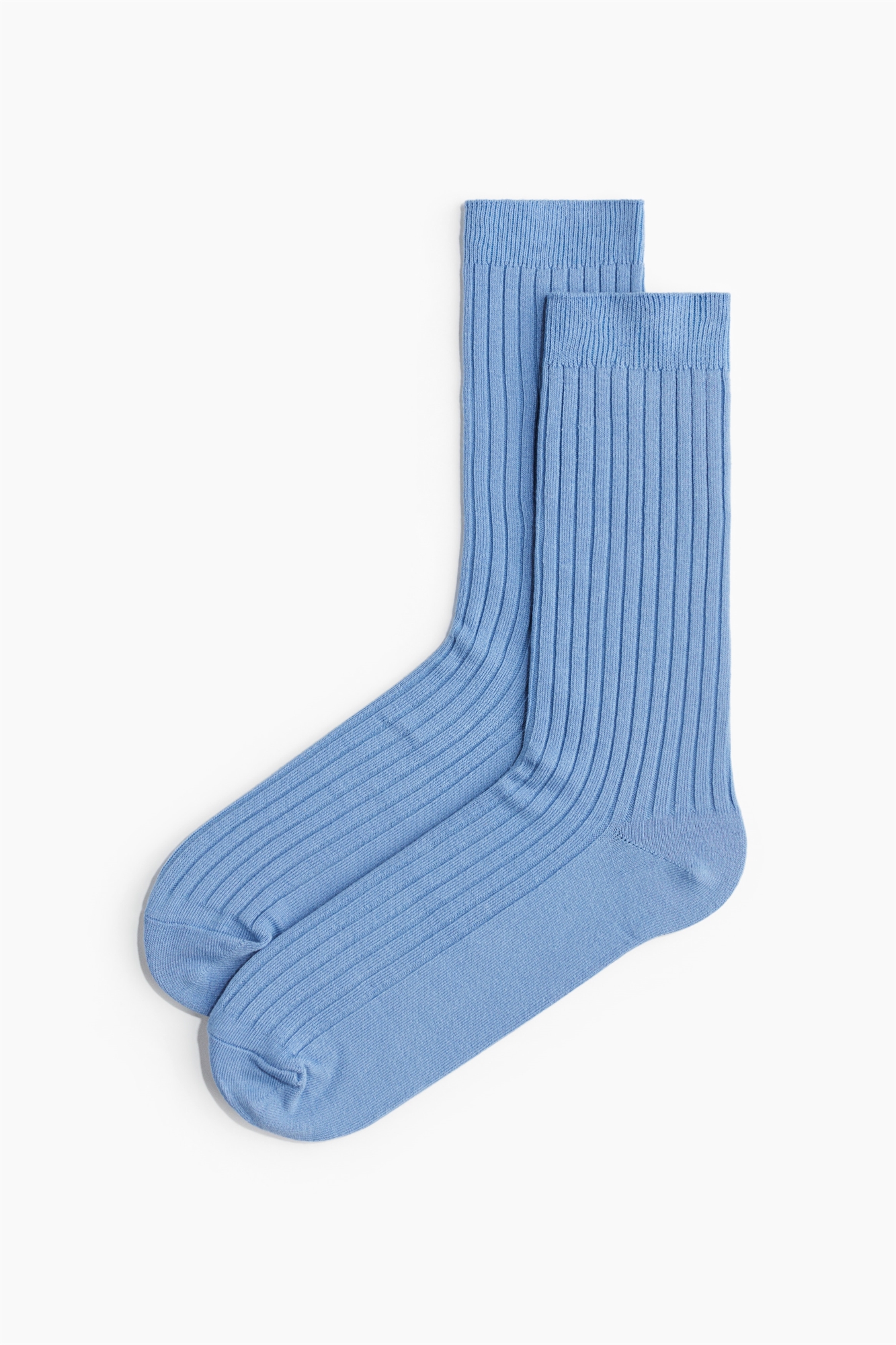 Носки из тонкого хлопкового трикотажа с ребристым голенищем и эластичным верхом.